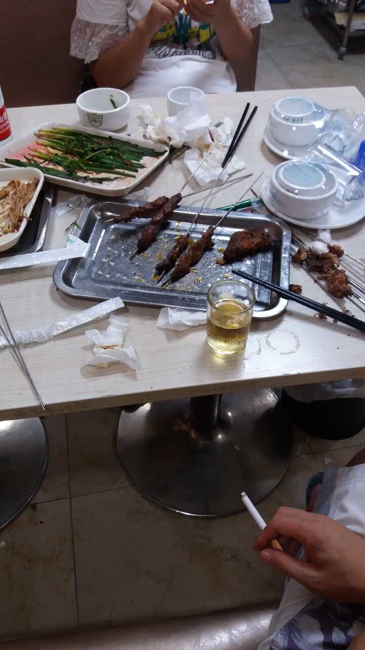 晚上领着孩子海边游玩,回来坐着说笑,围聚一桌吹着舒适的晚风,吃着烧烤,喝着啤酒。爽