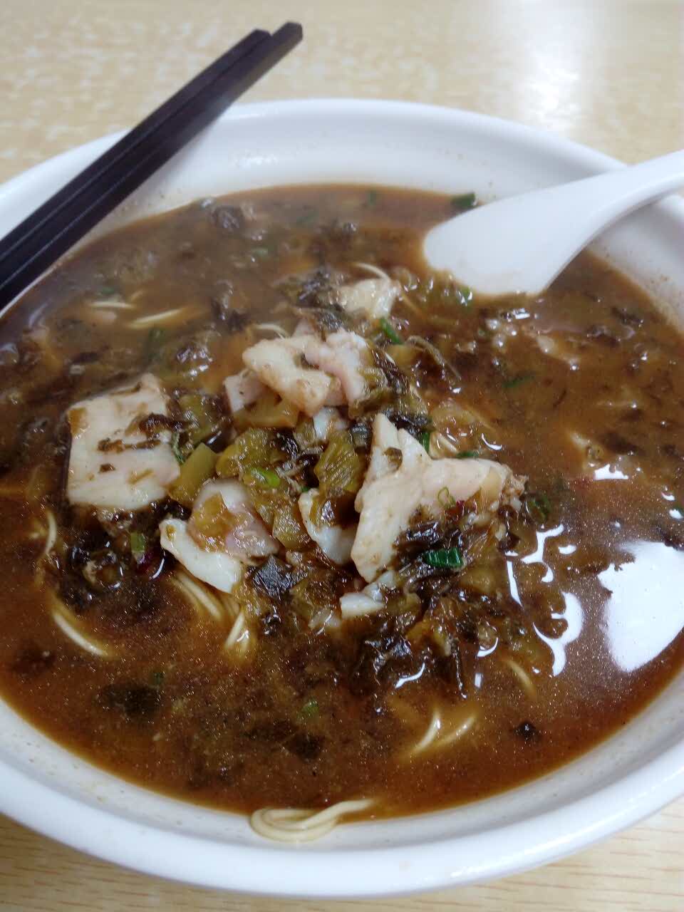 面条滑爽,面汤味鲜,特别是酸莱鱼面和大肠面特好吃,吃后忘不了。