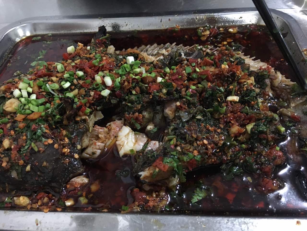 烤鱼加了藿香味道好吃,烧烤也不错,好吃,只是回家喝了很多水,整条鱼的时候忘了照相,只照了半截