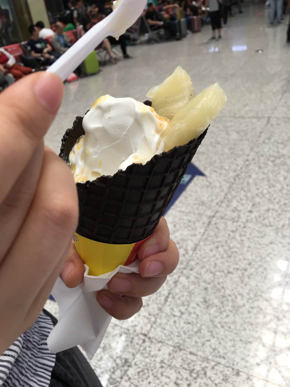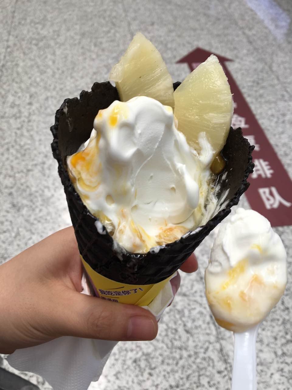 味道还不错,就是上面的芒果酱流在外面了,不太好。