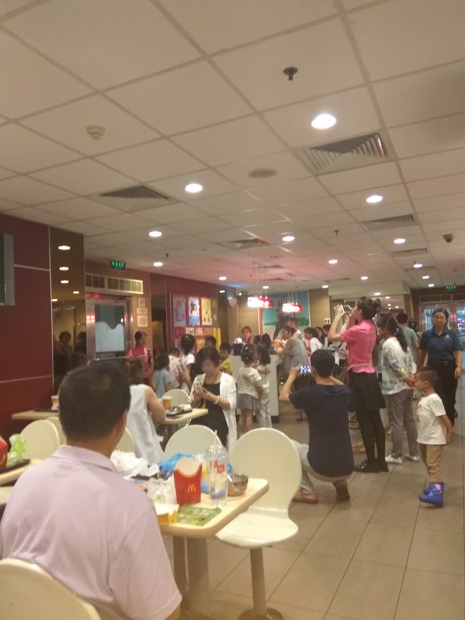 人很多,店员带小朋友玩游戏,店里真是热闹啦