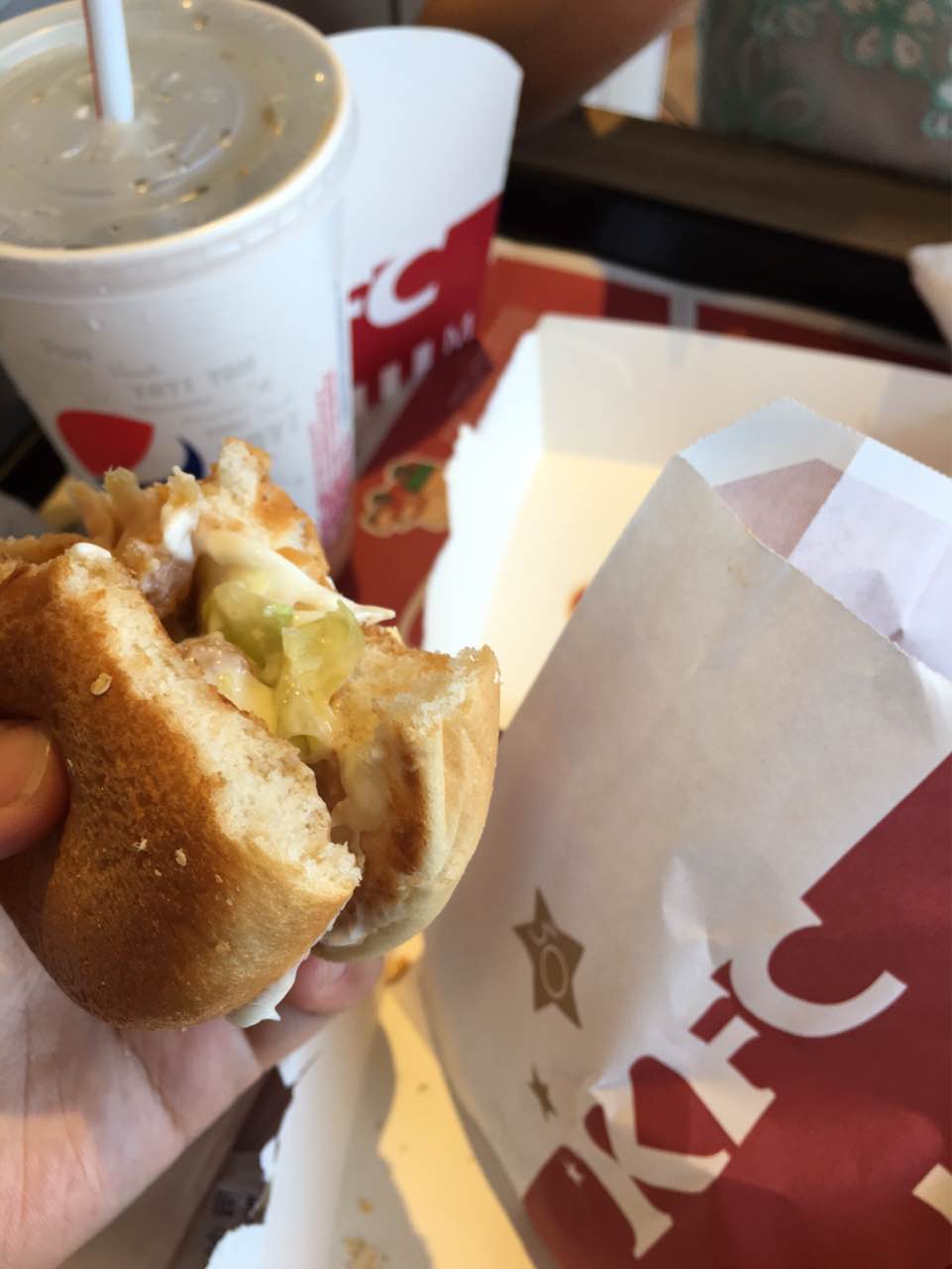每次来这里都非常多人,今天汉堡青菜不新鲜了。就一片焉掉的小小叶子,相比万达有点逊色了。