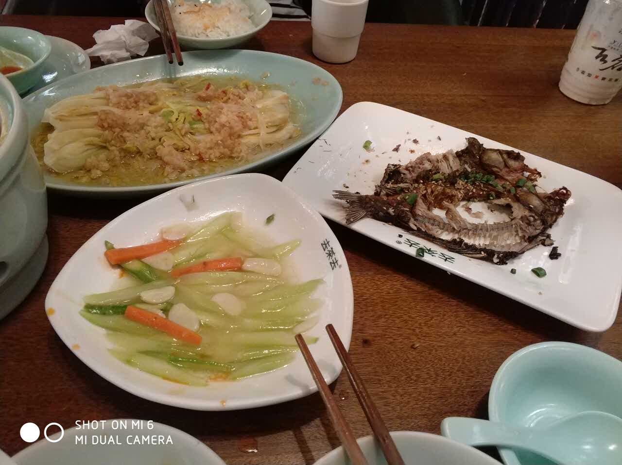 而且偏咸娃娃菜菜心枯黄 蒜味很冲 一盘菜只有蒜味这个煲 火没烧2分钟就没了 还能下口鱼 外面烧...饭有硬块 怀疑掺了剩饭菜没熟透 中间白块 而且偏咸娃娃菜菜心枯黄 蒜味很冲 一盘菜只有蒜味这个煲 火没烧2分钟就没了 还能下口鱼 外面烧烤店的都比你好服务嘛 去过的都知道