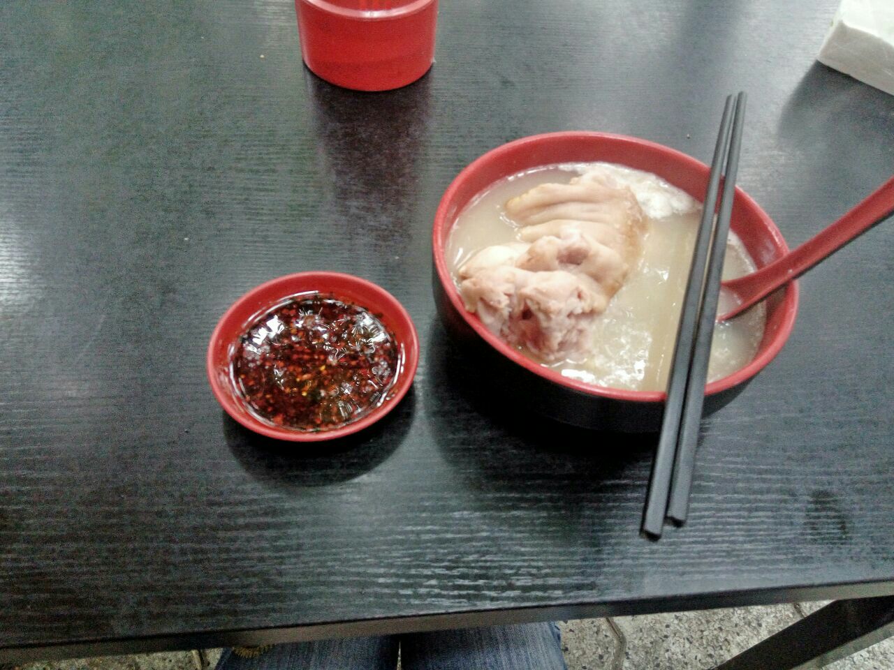 不是不好吃 而是 我在家也没吃过那么多猪蹄 平时吃其它肉多 这个第一二口下去 肉很容易就扯下来 确实好吃 但是往后 有点腻 我不太习惯 这是生活习惯的问题 平时就爱吃猪蹄的 肯定就觉得得吃两碗才行了 ps:老板特别热情