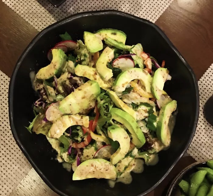 走进七七街,留意道右边的一间小店,暖色的灯光映衬着木质的牌匾格外温暖,朋友邀约第一次来到居酒屋,之前总觉得自己又不喝酒来居酒屋不合适,这次和朋友的欢乐小聚让我重新认识了居酒屋,温馨的气氛,热情的服务,这样的小馆既可以独自斟饮;亦可以三五好友小聚欢谈,特色的鳗鱼三吃一定要尝尝;沙拉点一份,天冷再点一锅热汤或是铁板,下班后来到这里放松调剂极好不过^_^