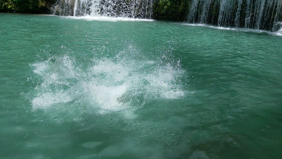 在锡基霍尔岛中部,瀑布是非常小的下面那个也可以叫做牛奶瀑布,看起来水还是蛮清楚的,下面也没有什么小鱼。 最大的特色就是可以树藤跳水,或者说是从瀑布上面跳下来,50p一个人,随便跳,不过其实跳几次也就差不多了,去的时候刚好也没有什么人,所以也就玩了很多次,也可以两个人一起跳。 要注意一下,这边会有一个向导会收小费的,外面卖汽水的也是挺坑的。