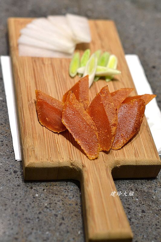 进门就见到很多新鲜五彩的时蔬装饰,中间是配菜的大厨房,开放式的, 周边一圈吧台位,好多客人都坐在那里吃有点点日式的感觉,很热闹, 台湾野生乌鱼子 野生的噢〜据说很珍贵的,就这么放在嘴里细细嚼鲜是鲜的不得了呢。 黑毛和牛肋眼 这个肉肉最最嗲了,细腻的雪花久烫也不会老,很嫩的最最喜欢吃了。