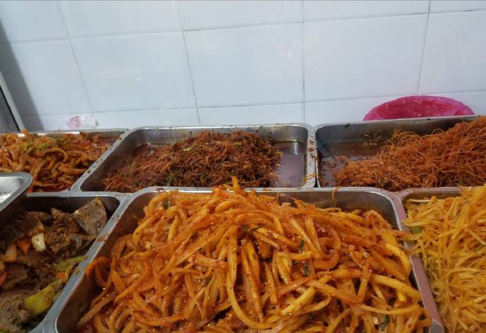 朋友推荐来佳木斯必须要吃的。店里环境一般,中午人超级多。向阳街16号(中心医院西胡同中段) 推荐:凉拌面,上面就是干豆腐,豆芽,牛肉丝,火腿再配上酸酸辣辣的汤口。夏日中午,来一碗酸酸甜甜的面,凉爽,沁人心脾。桌上有搭配的辣酱,可以根据自己的口味自己调制。店内还有多种好吃的拌菜