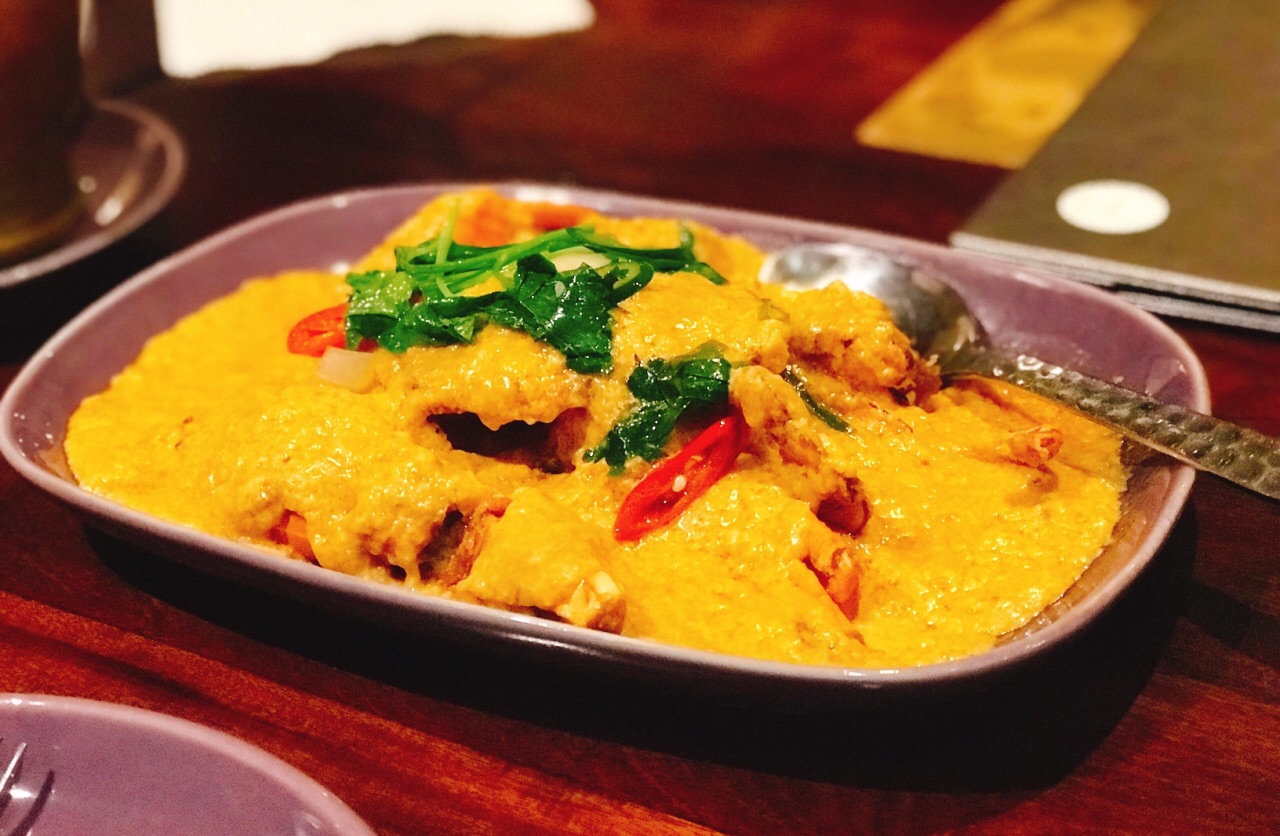 大家觉得好吃,所以我们去吃了,网友说这里泰国米其林三星,冲着这点我以为很高大上了,两点多到了还排队,吃完四点依然排队。冬阴功画了两个辣椒,可是不辣,咖喱蟹没有咖喱味,里面加了蛋花一点都不辣,女儿都能吃的惯。最坑爹的是,服务态度一点都不好根本无服务,还要加收10[%]服务费,更更扯的是我们吃个饭还要付7[%]的城建税。