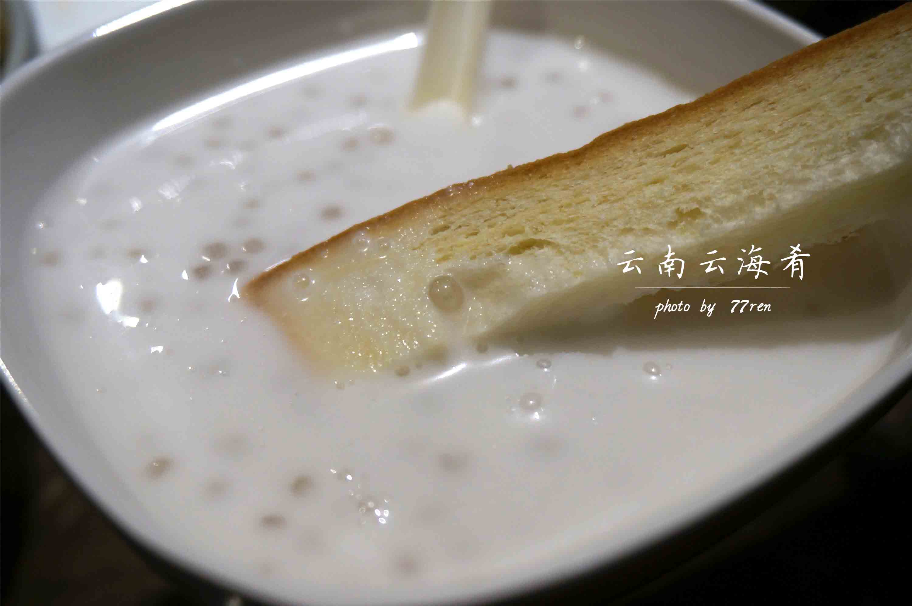 椰汁西米露泡鲁达 用面包条蘸椰汁西米露的神奇组合,面包条好吃哎