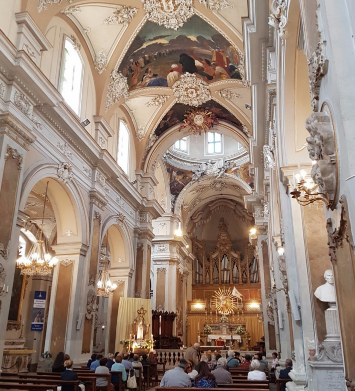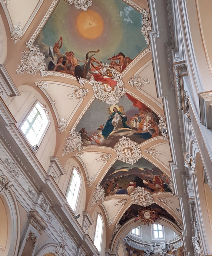 ...理石玛丽亚雕像,位于老城区中心,卡塔尼亚的许多建筑都是由黑色的熔岩石制成的,所以教堂是很醒目的这座教堂是西西里巴洛克式建筑,建于十八世纪初。一些醒目的五颜六色的天花板画,一个精美雕刻的大理石玛丽亚雕像,位于老城区中心,卡塔尼亚的许多建筑都是由黑色的熔岩石制成的,所以教堂是很醒目的