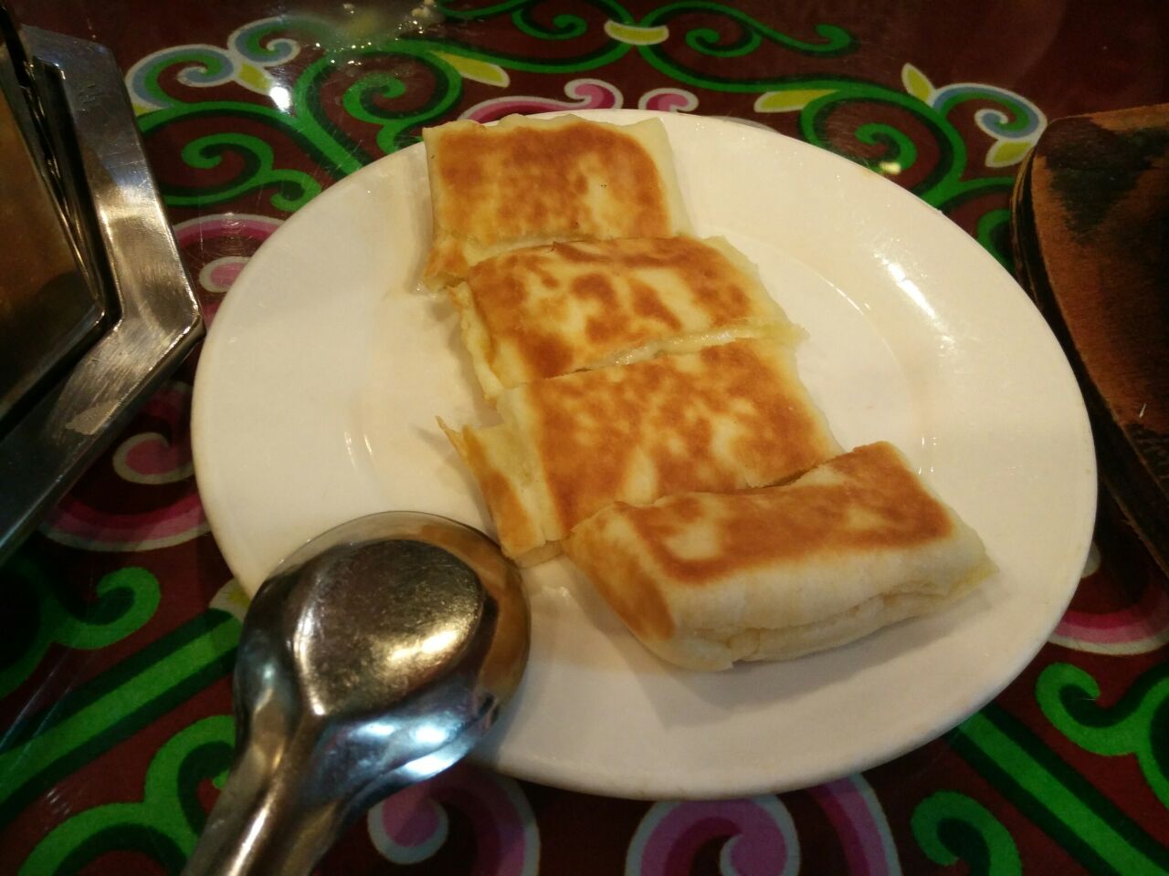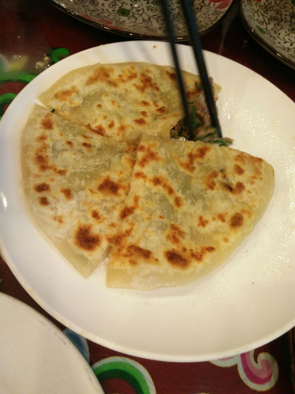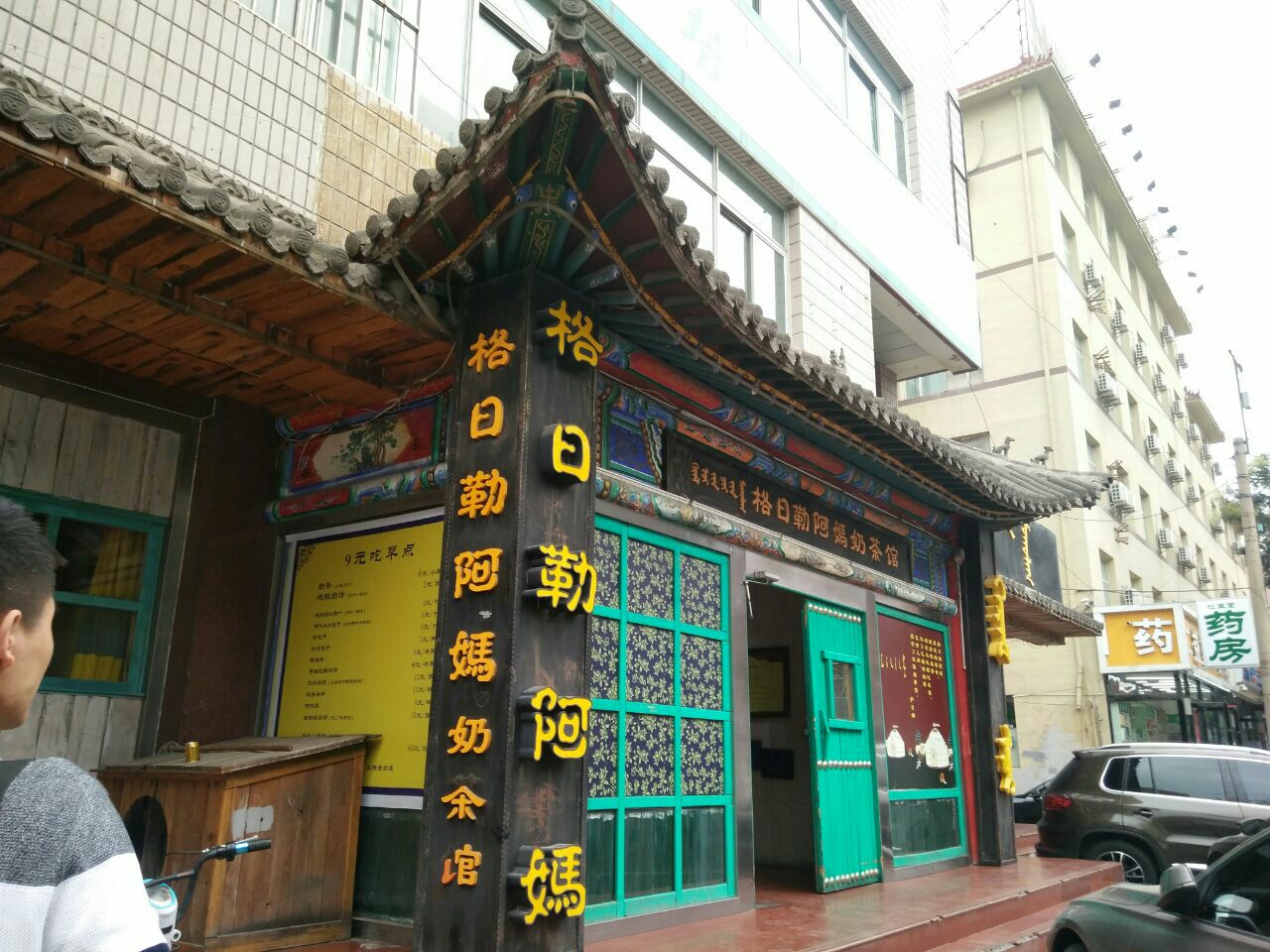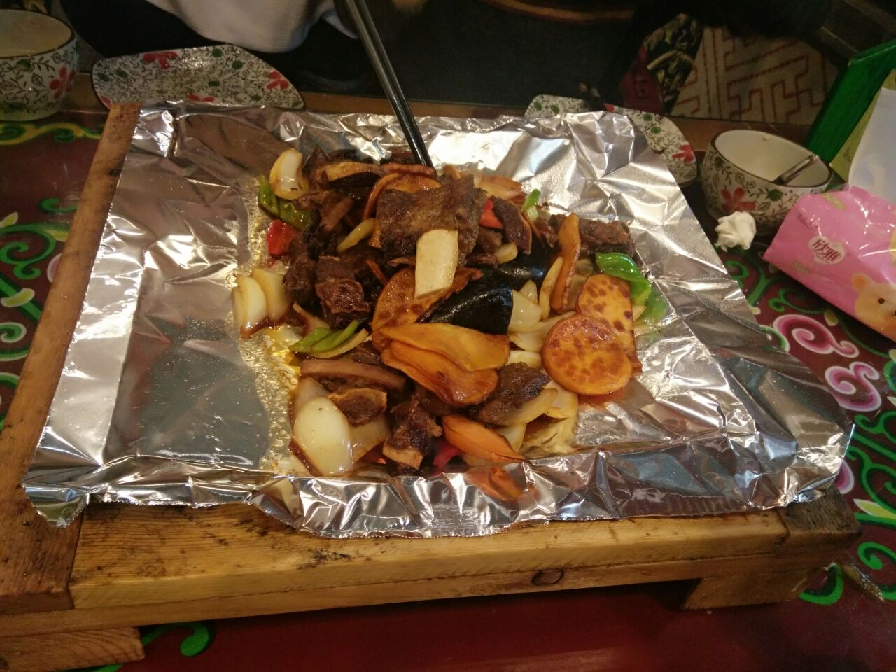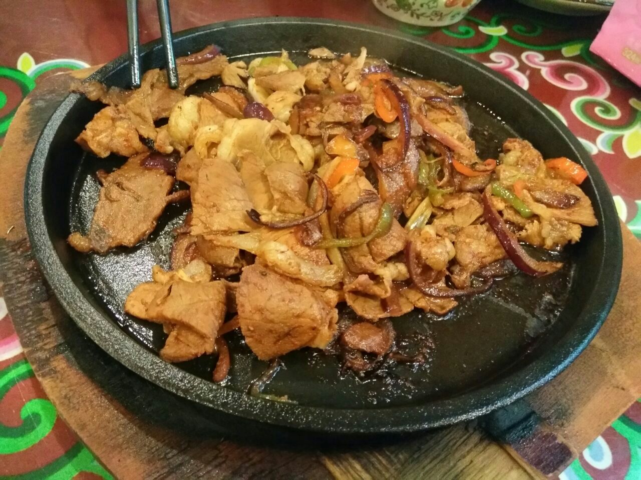 去了排名第一的将军蜀衙店,点了石头烤山羊招牌菜,有好几种,想吃羊排的结果没有了,牛蹄牛肚都不感冒,后来点了牛排,肉很劲道,看着不多,四个人吃撑了,还有铁板羊肉,味道炒鸡赞。点了大锅奶茶,好喝呦,还有甜点,不过没吃上冰糕,好遗憾。说是属于内蒙早点,六七点就开始卖了,所以尽早去哦。服务的妹纸人炒鸡好,人美又贴心。