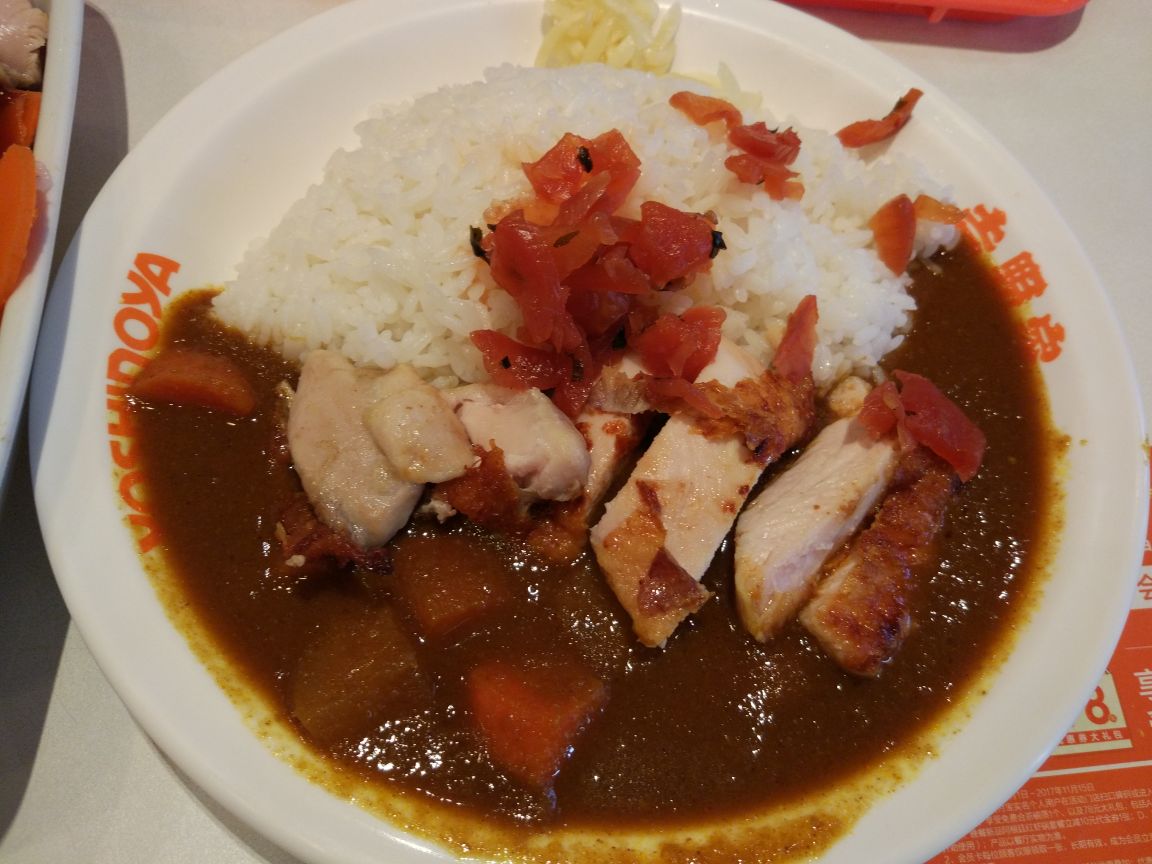 新咖喱鸡排饭,头一次吃,个人感觉不去原来传统的咖喱鸡肉饭好吃,这个咖喱汁特别特别咸,没什么咖喱味儿