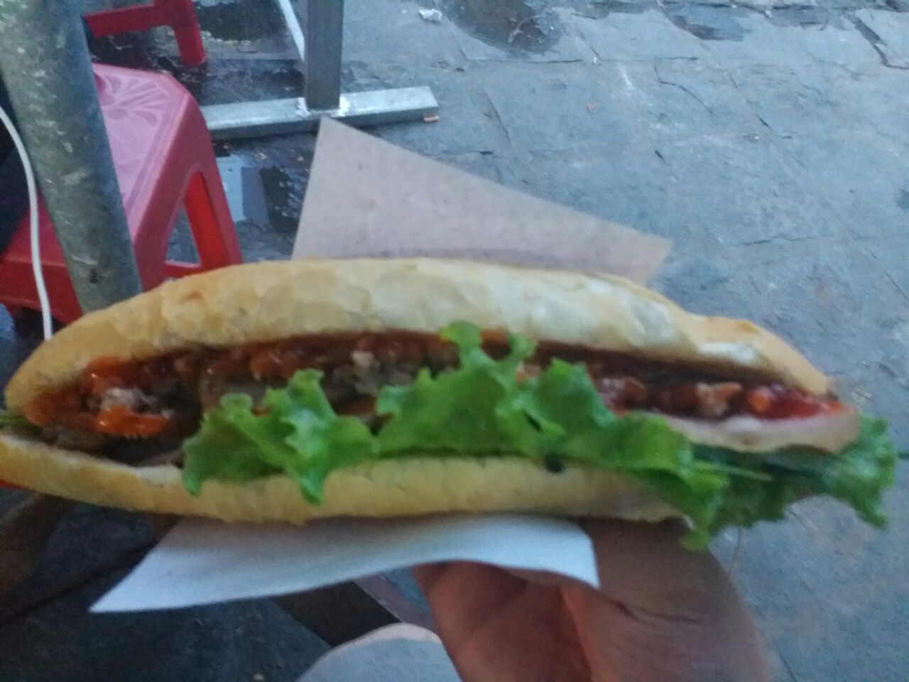 地方还算好找,就在出了古城的会安菜市场边上,周边环境就和国内小县城的菜市场差不多,老板娘一个人忙里忙外的也挺不容易,周边好多当地人来他家买看来也不差我们这些游客的生意。味道挺不错的,又便宜,走累了,买个法棍来打个尖也不错。