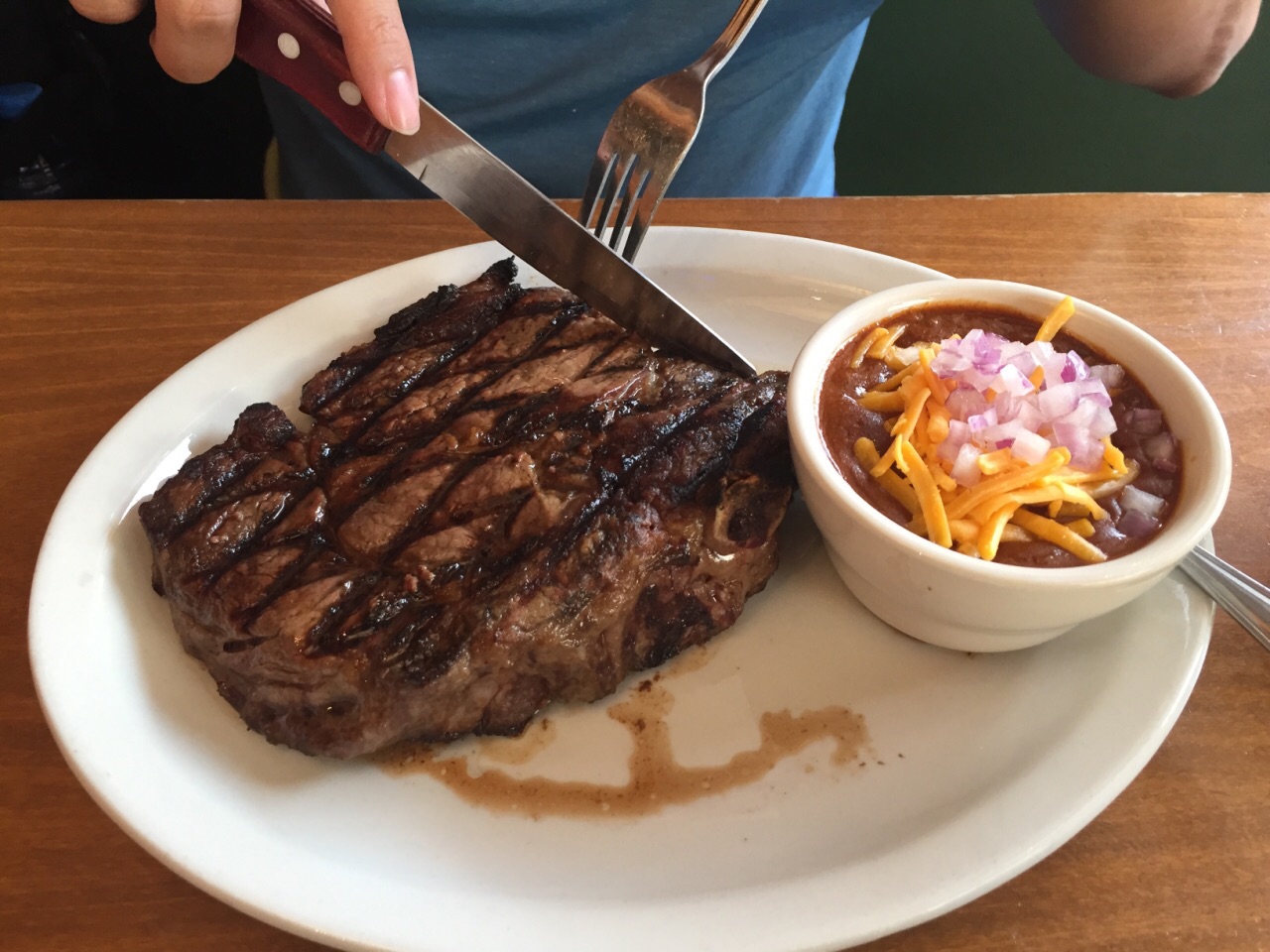 ...超厚的牛排 多汁 鲜嫩 是国内的牛排不能比的餐前面包很好吃 饮料也很不错的 就是上餐的时间稍长特地安排去吃的 在法拉利公园外面 超厚的牛排 多汁 鲜嫩 是国内的牛排不能比的餐前面包很好吃 饮料也很不错的 就是上餐的时间稍长