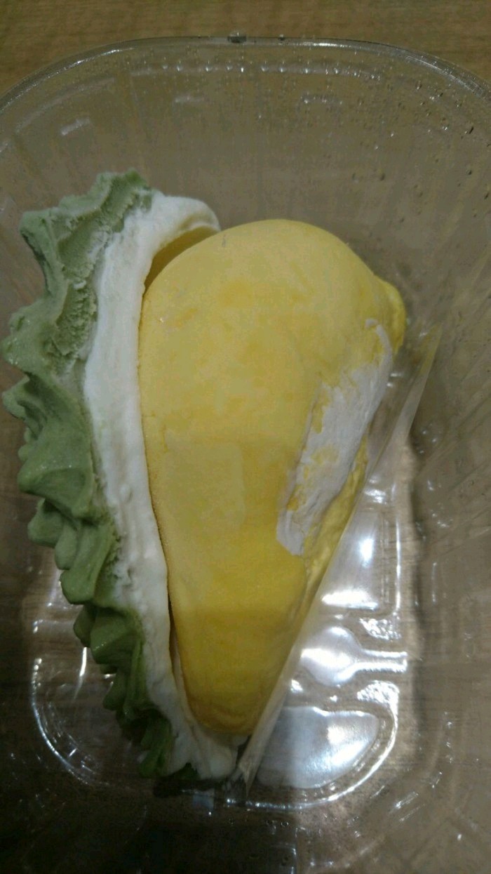 网友2017-10-09榴莲冰激凌里面居然是一整块榴莲,是冰冻过得,味道还是很浓的,不可以带回酒店,所以路上就吃了,堂...榴莲冰激凌里面居然是一整块榴莲,是冰冻过得,味道还是很浓的,不可以带回酒店,所以路上就吃了,堂吃的冰激凌品种更加多,味道也不错。