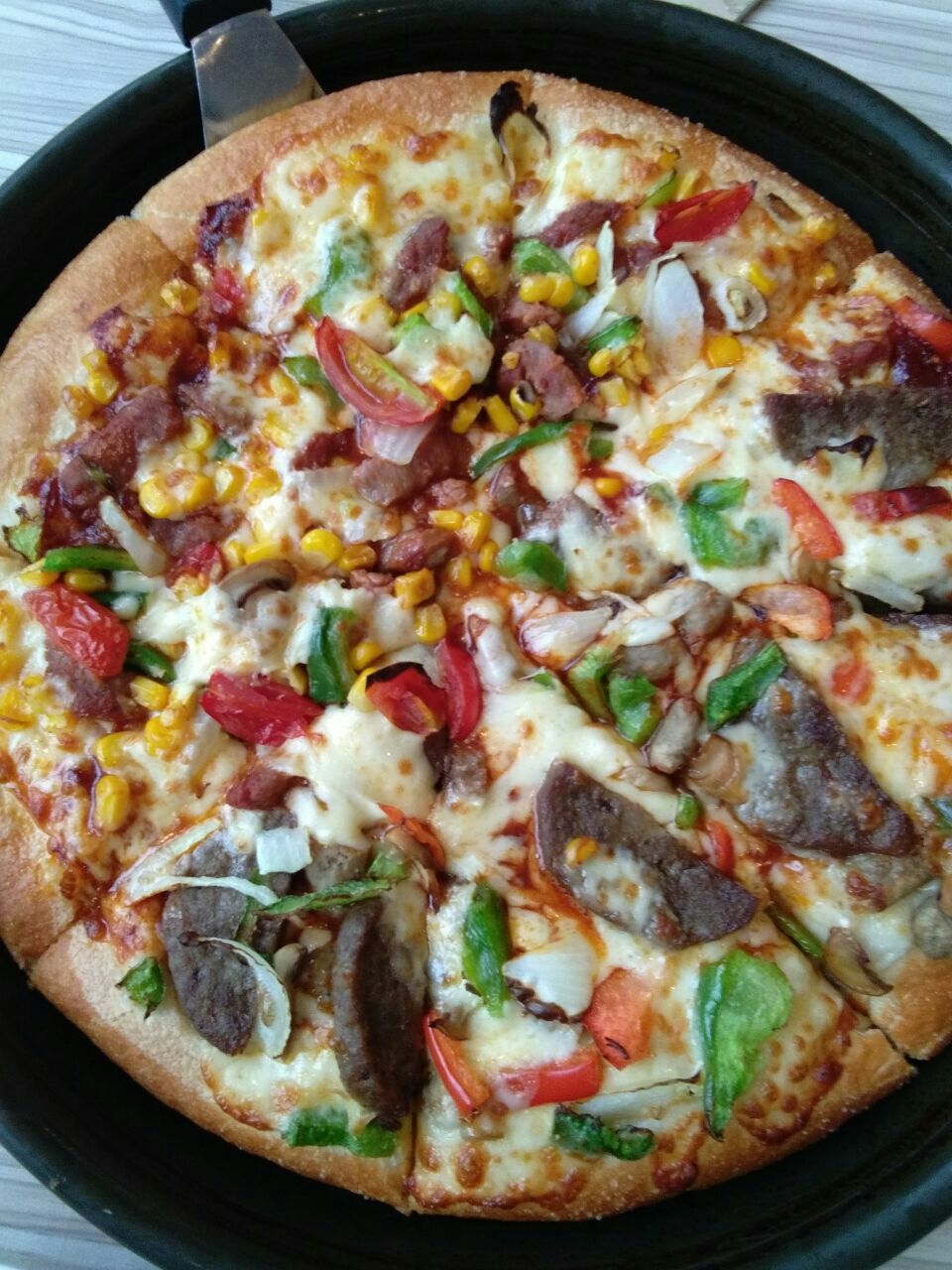必胜客(潮驿178店)位于昌平区北苑路28号潮驿178的1层。这里好多年前是一家华堂,后来变成潮驿178了。必胜客位于这座大厦的西南角的一层,店面的面积不算大。美式经典土豆沙拉,21元,味道还可以,就是好咸。加州风情烤牛肉和香烤劲牛二合一披萨,104元,两种披萨看起来都差不多,简直分不出来,蔬菜和肉都长的一样。味道就是劲牛稍微辣一些,两种披萨全是齁咸齁咸的。服务倒是挺好的,上菜很快,而且会主动倒水和续杯。