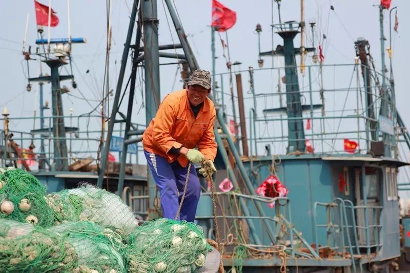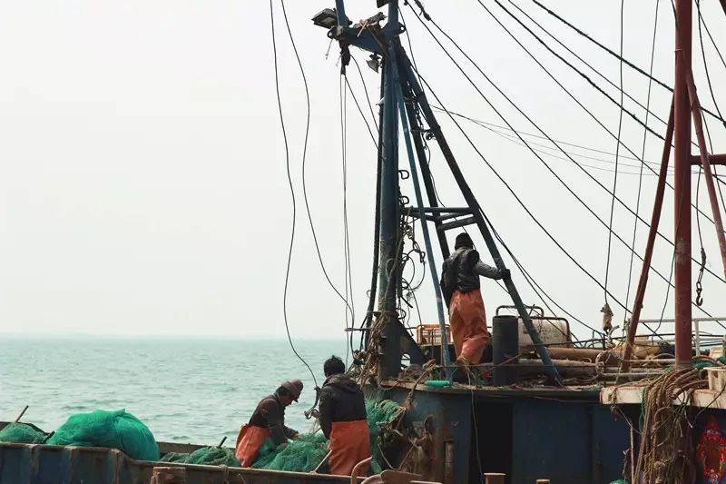 去三山岛村的季节不是渔民最忙的时候,正巧午后有三艘满载着渔网和锚的渔船要进海下网,我们也看个新鲜