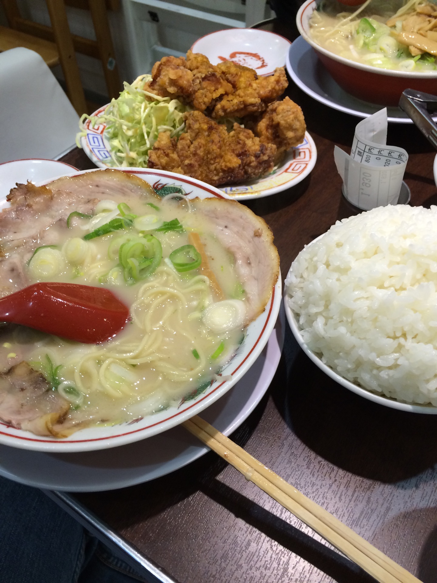 スープの見た目からは肩透かしを喰らうアッサリ目の味。唐揚げはカレー風味が美味しく、大きい。ご飯...スープの見た目からは肩透かしを喰らうアッサリ目の味。唐揚げはカレー風味が美味しく、大きい。ご飯の大盛りはとても多いので気をつけましょう。麺大盛りはありません、替え玉対応です。