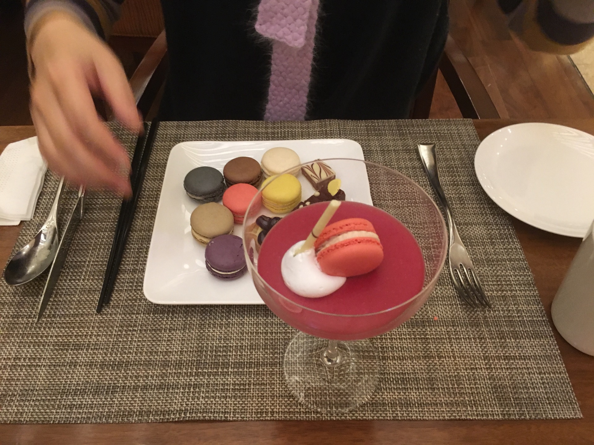디저트가 정말 맛있어요 특히 다양한 맛과 칼라의 마카롱이 좋았어요