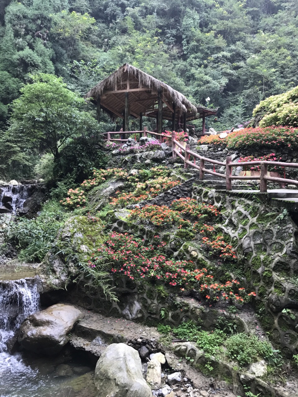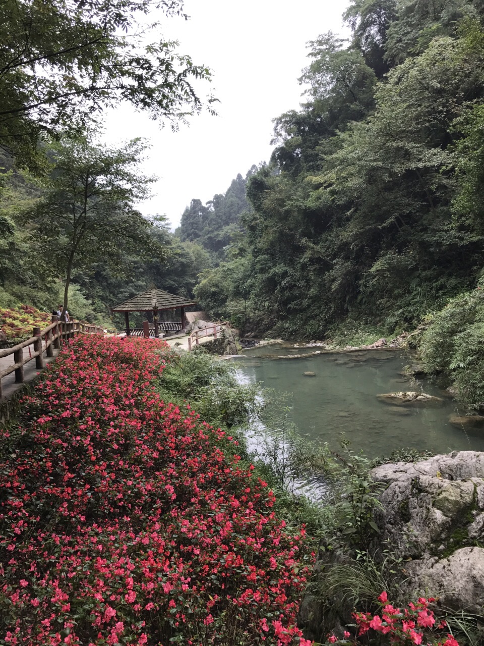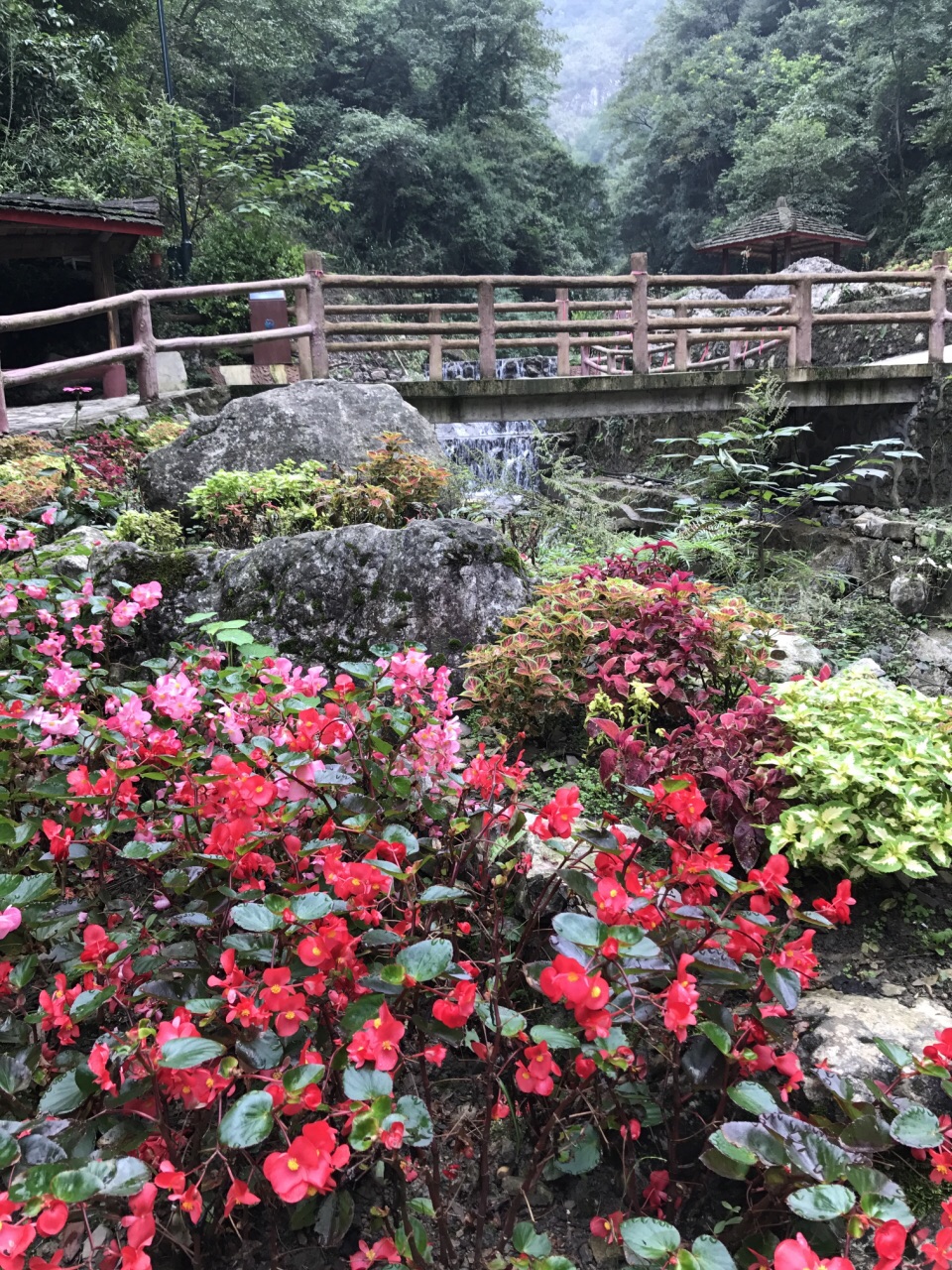 漂亮得出人意料,本是随便找个景区逛逛打发周末,却意外发现了这么美丽的景色。我们是一路爬上山,当然也可以坐观光车到最高点再走下来,其实一路缓坡,也不累,一边呼吸新鲜空气一边锻炼也是极好的。临近国庆,谷内应该是加大了摆放鲜花的密度,随处可见成片的凤仙、海棠、大丽花、菊花等,配上天然的峡谷溪流,随便照张相都很美。打算以后春天再来看看。