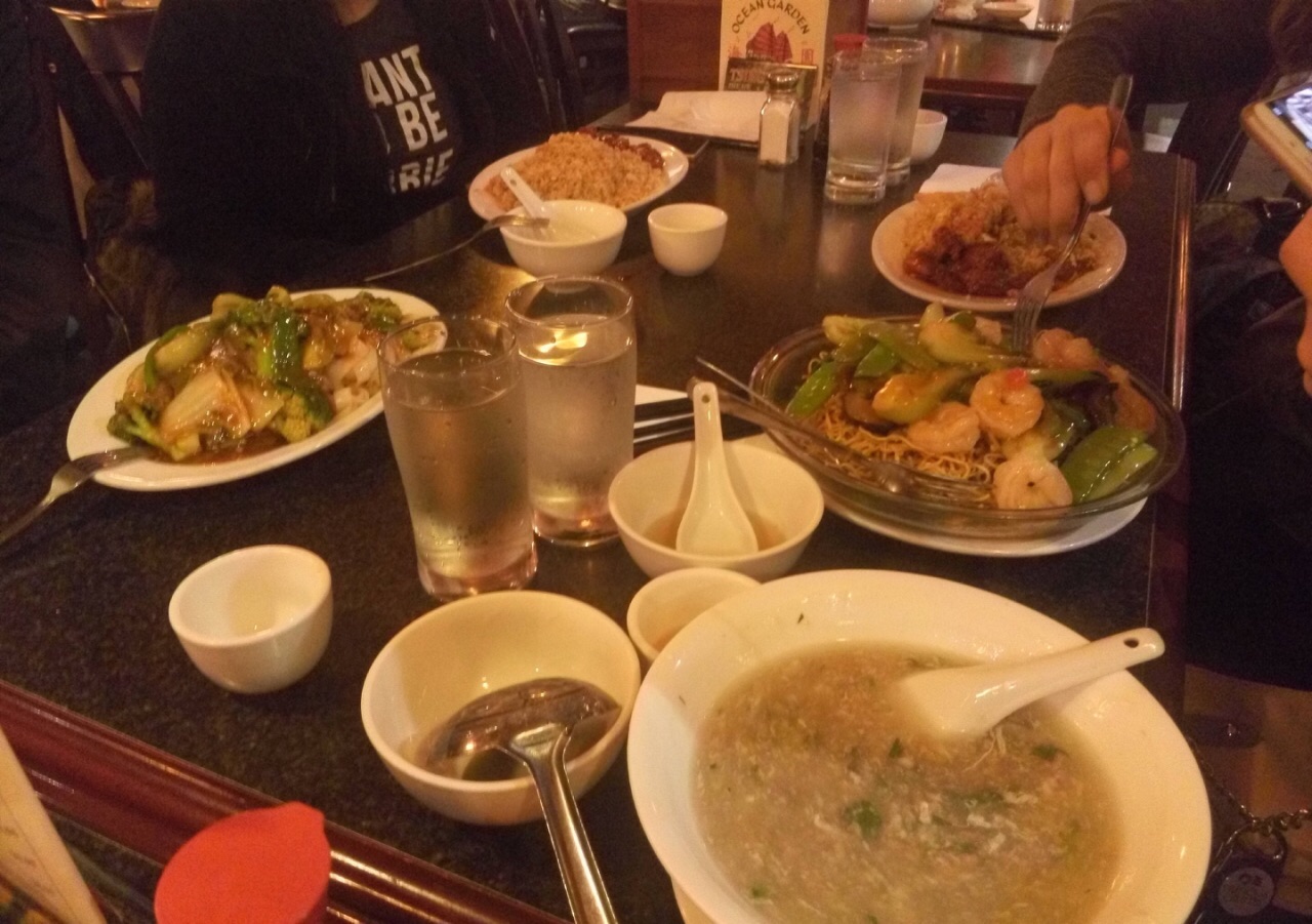 点了一份牛腩煲仔饭+云吞+(外带)干炒牛河 就花了45美金 感觉真的好贵的样子 但是这真的是我这两个星期来吃得最饱最满足的一次了 餐后一个幸运签饼 Good things will come to you in due time