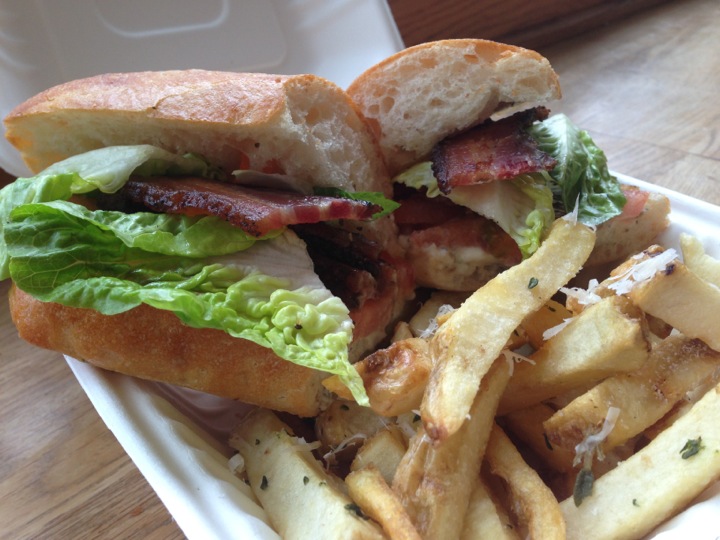 Can't go wrong with the LGBT Sandwich (g is for...Can't go wrong with the LGBT Sandwich (g is for goat cheese) & herb Parmesan fries..