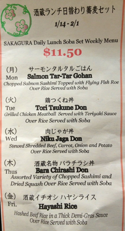 New $11.50 M-F lunch specials (1/4-2/1/13. *Changes monthly). They have limited quantities so get there early (before 12pm to be safe). Enjoy!;)