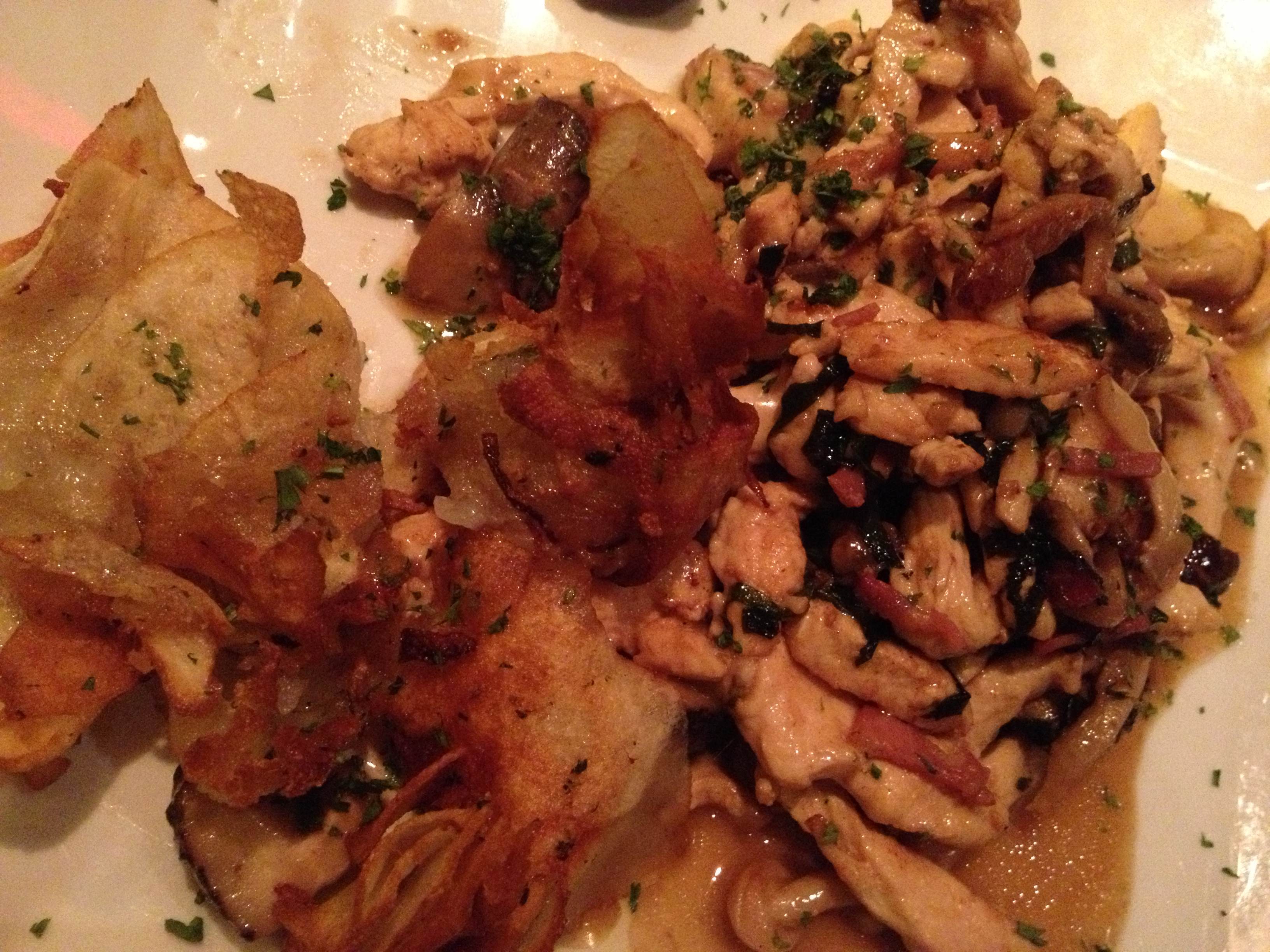 Yummy: Pollo Cardinale - chicken sautéed with mushrooms, prosciutto, and Marsala wine, finished with smoked mozzarella