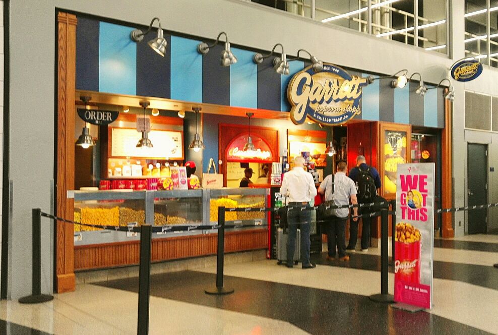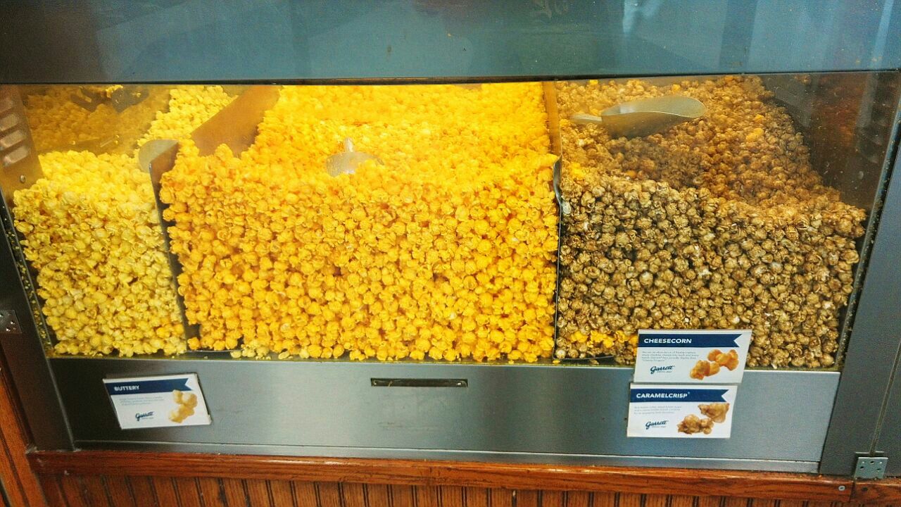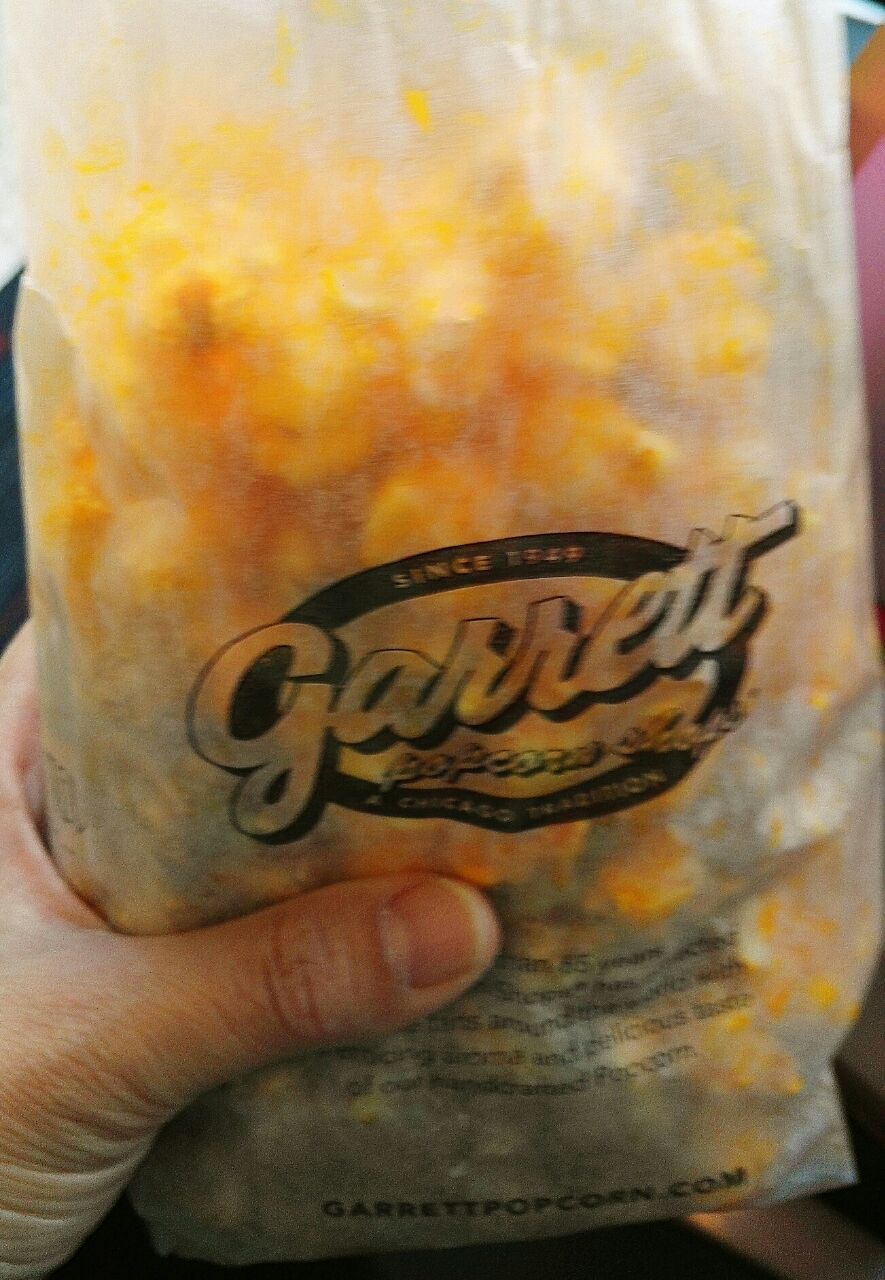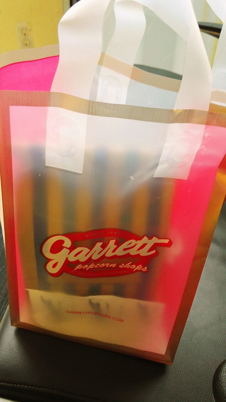 这个是号称全球最好吃的爆米花-Garrett popcorn,好多种口味,小份的大概5美金,要...这个是号称全球最好吃的爆米花-Garrett popcorn,好多种口味,小份的大概5美金,要了芝士和焦糖两种的混合,金灿灿的是芝士,咸软浓香,核桃色的是焦糖,甜脆酥松,都是好吃的重口味,大赞