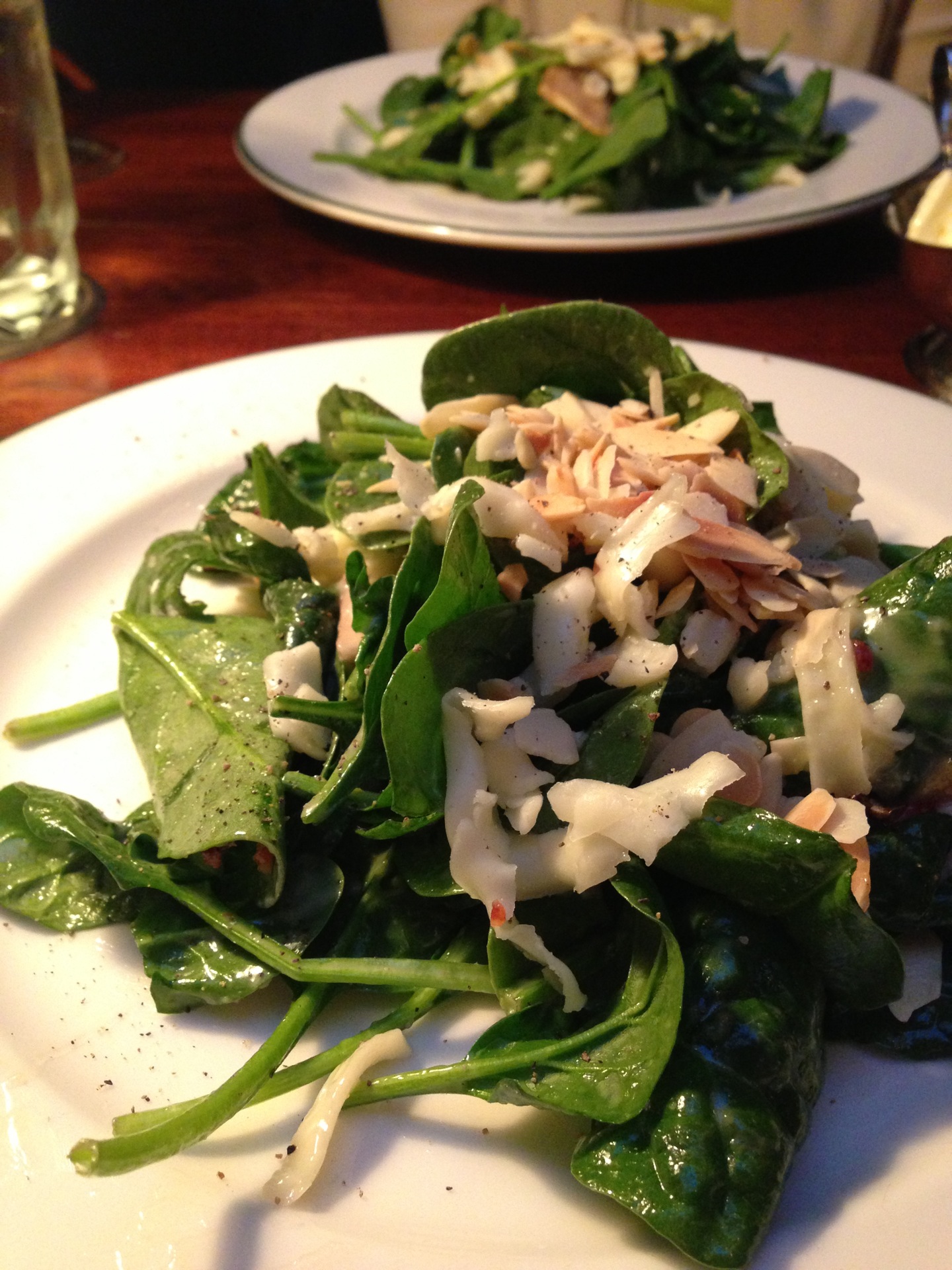Awesome spinach salad!!! Cheese + almonds + mus...Awesome spinach salad!!! Cheese + almonds + mushrooms + bacon mmmm yummmmm. SUPER worth the $10