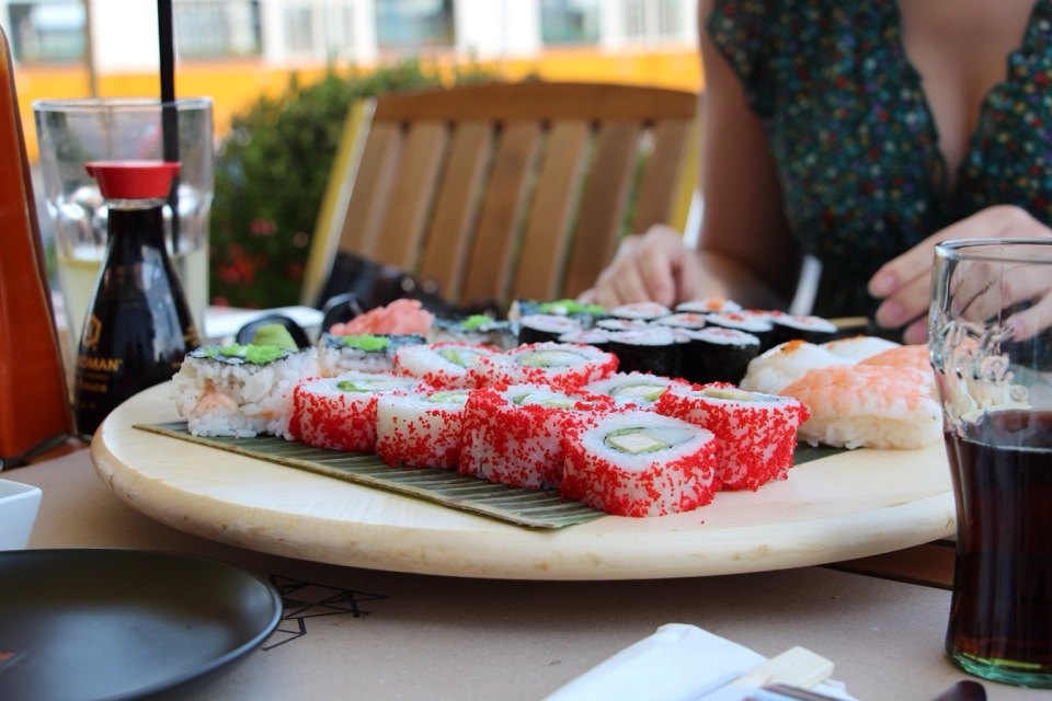 Van ez a 30 darabos sushi válogatás két személyre 10k-ért, lazac nigiri sajnos nincs benne, de van hozzá lazactatáros rákszirom meg miso leves. Jó kis hely finom a sushi, kár, hogy kint vannak Óbudán.