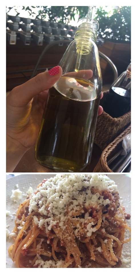 何が嬉しいって、唐辛子の入っていない普通のオリーブオイルが各テーブルにあること!唐辛子入りオリーブオイルはお肌にとっては微妙だけれど(刺激物=お肌の荒れの原因となり得るから)まっさらなオリーブオイルはたくさん摂るべき❤️