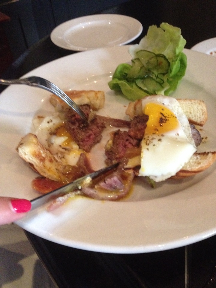网友2014-08-12Burger with egg. Sooooo good. Free popovers.......Burger with egg. Sooooo good. Free popovers..... Also sooooo good.