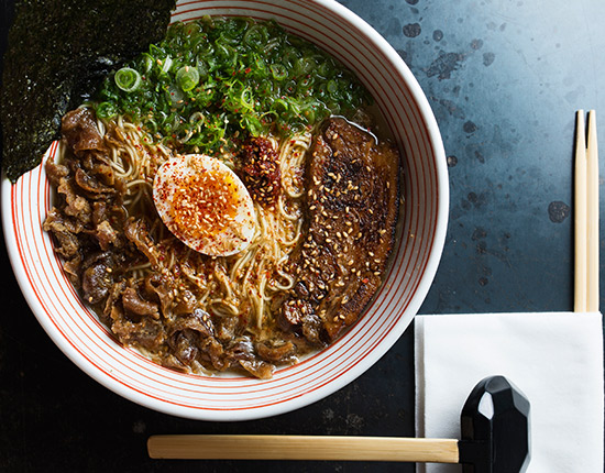 Stay out late for Takashi's beefy ramen. Beef bones are simmered for a full day, & the broth comes with braised Kobe belly, seaweed & a soft-boiled egg. You can also get it spicy for one extra dollar.