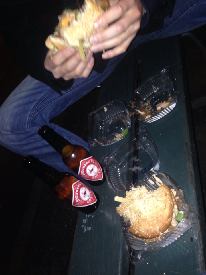 Awesome hangover burger!! Too bad the Brouwerij 't IJ beers are only for take outs, but definitely worth it!