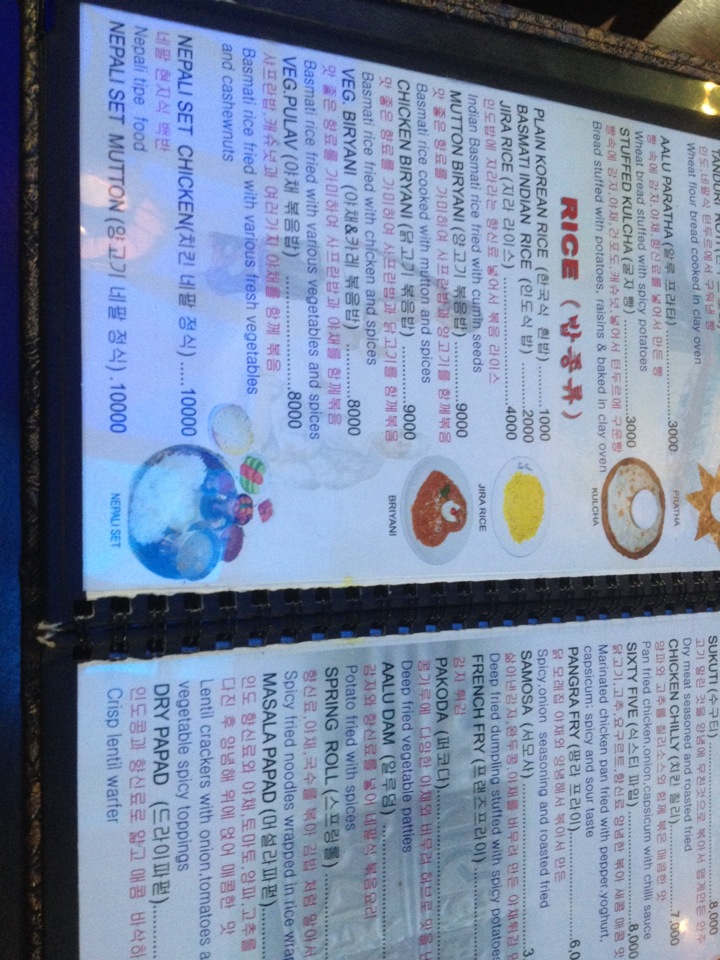 탈리에서는 다른 커리로 바꿀 수 없음.. 양고기나 닭고기 커리가 탈리 세트에 들어있음.