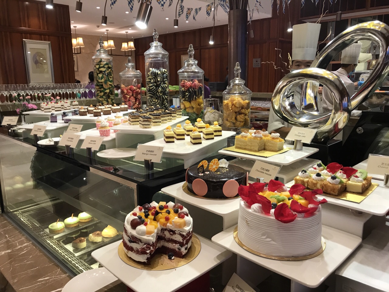小龙虾鲜甜弹口,三文鱼爽滑鲜嫩,羊排细嫩多汁,腊肉咸甜入味,寿司精致美味,糕点滑嫩不腻小龙虾鲜甜弹口,三文鱼爽滑鲜嫩,羊排细嫩多汁,腊肉咸甜入味,寿司精致美味,糕点滑嫩不腻。而且供应得很快,不会让人等太久。