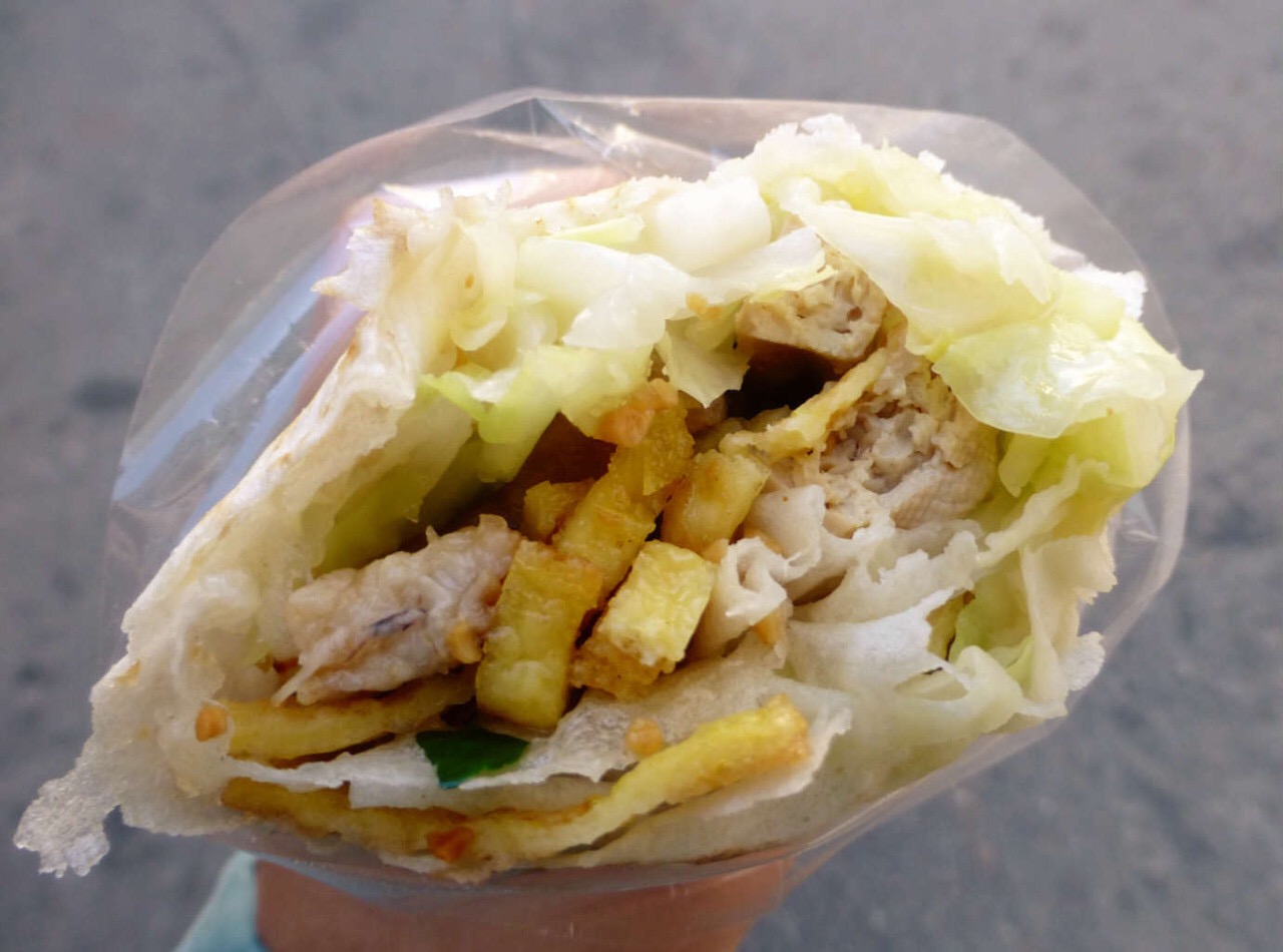 网友2017-10-13吃了很占肚子,里面料很足。味道不错。春卷皮包上豆芽,肉酱什么的,卷成饼,很大一个和家里的春卷不一样,不是炸的,就是春饼。春卷皮包上豆芽,肉酱什么的,卷成饼,很大一个。味道不错。吃了很占肚子,里面料很足。