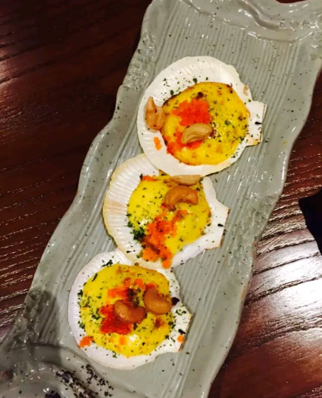 铁板烧烤和刺身都有的一家日本料理店。 虾只只新鲜所以烤好后都不用加什么调料就一股子鲜甜的味道了!怕不够吃还点了两份,真是一次吃的够够的吼吼吼吼! 北极贝每片都很大的,入口有嚼劲,好吃好吃。 扇贝更不用说了,满分。