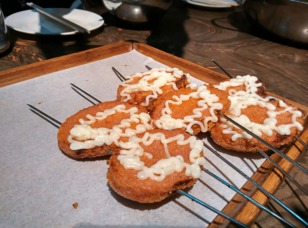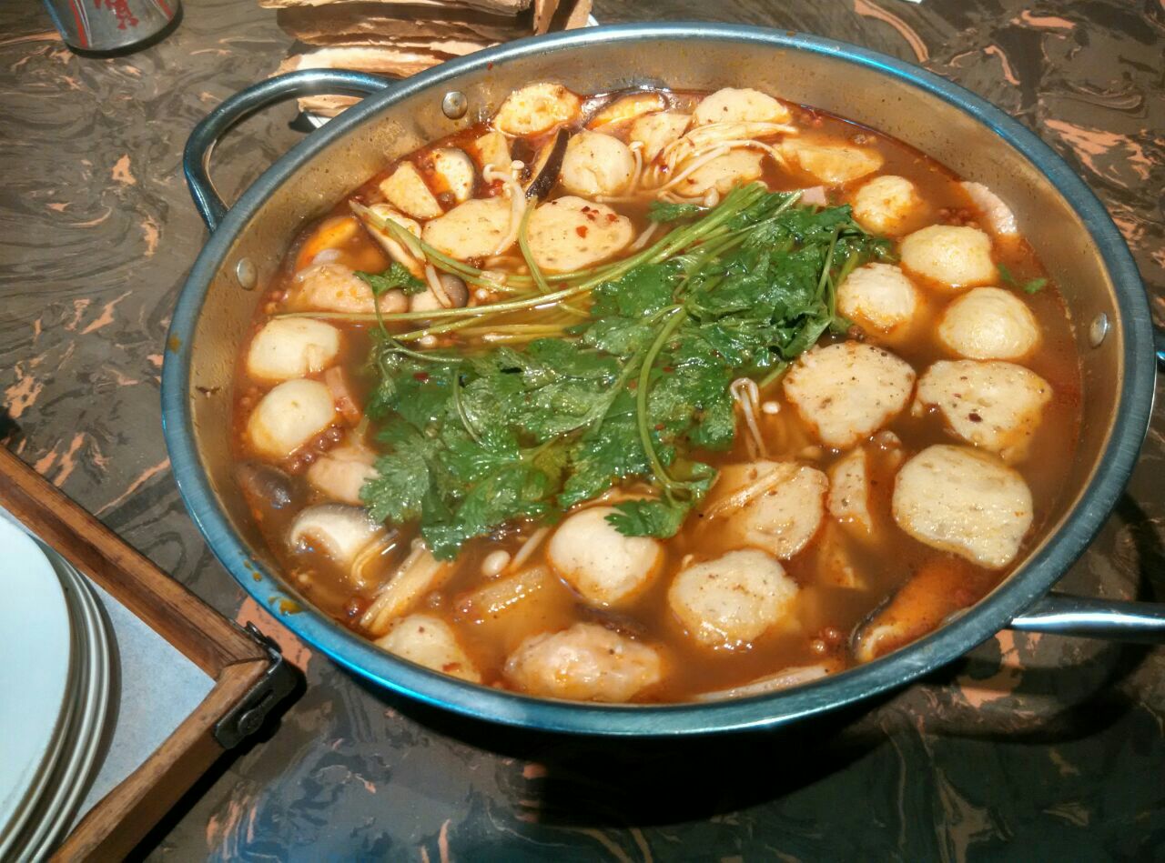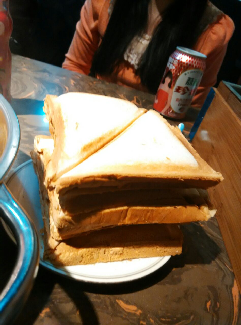 小味辣锅有点像麻辣串,里面料很足,火腿鱼丸水晶粉肥牛,配醋味道更佳。炼乳面包也不错,表皮还有点酥