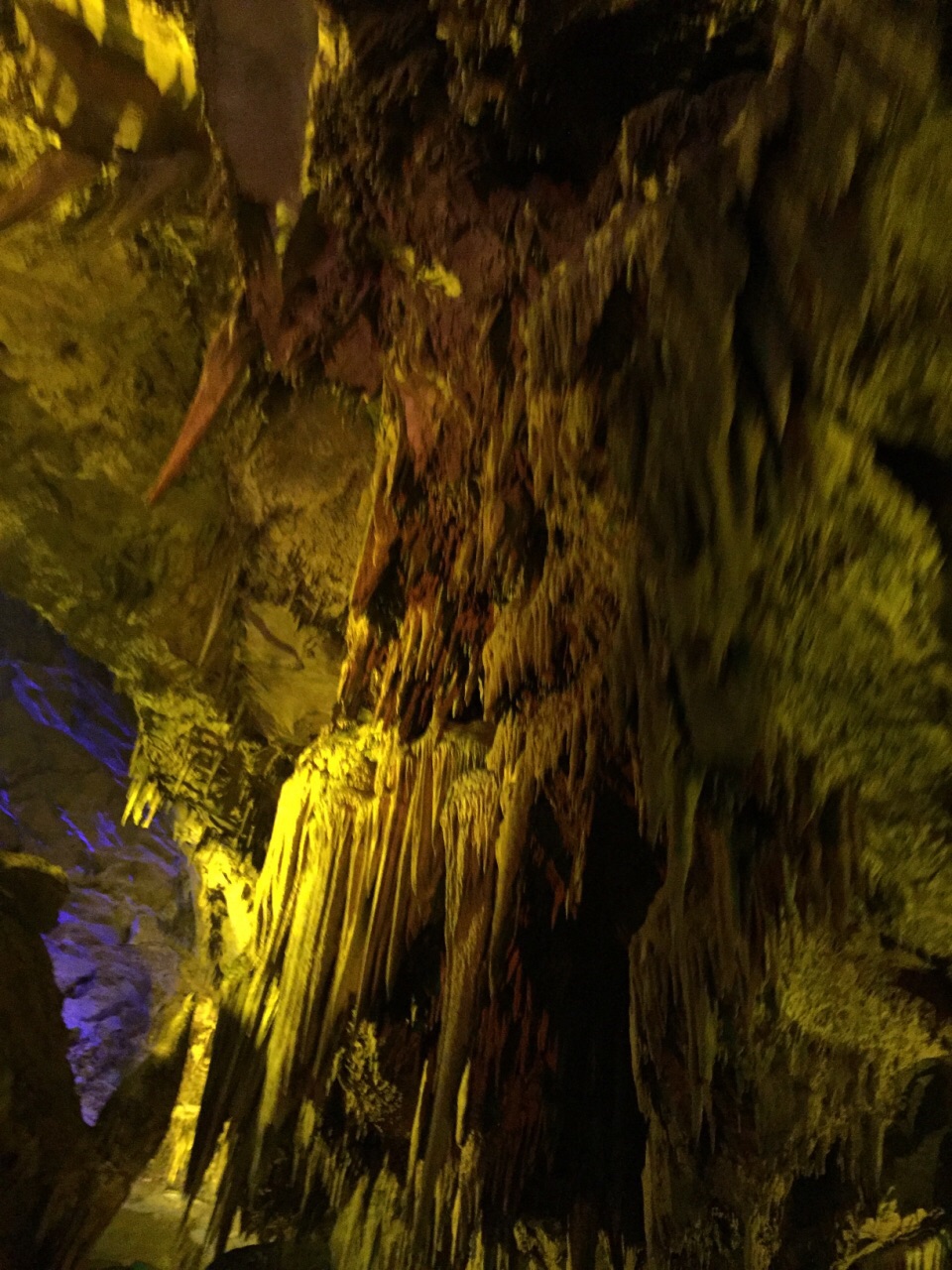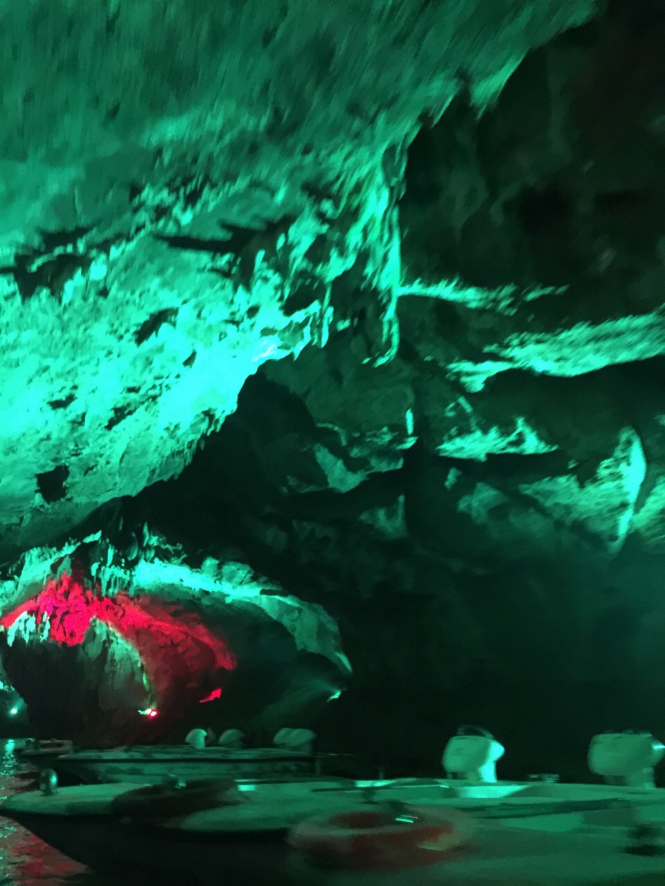 朋友从沈阳带着来玩的,据说挺有名的水洞。洞分水洞和旱洞,旱洞人走过去就可以了就是有点矮。水洞是坐船的,基本不太用排队,四个人一排往水洞出发。外面有免费的大衣,因为水洞里面比较冷(不过大衣都不是很干净,大家随便取用的) 里面都是自然形成的钟乳石之类的岩石,加上想象会起许多形象生动的名字。因为之前去过银子岩也是类似的溶洞,所以看这个也不是很惊艳。不过第一次来的话感觉还是不错的,坐着穿看溶洞不禁会想象以前没人开发的时候是什么样子