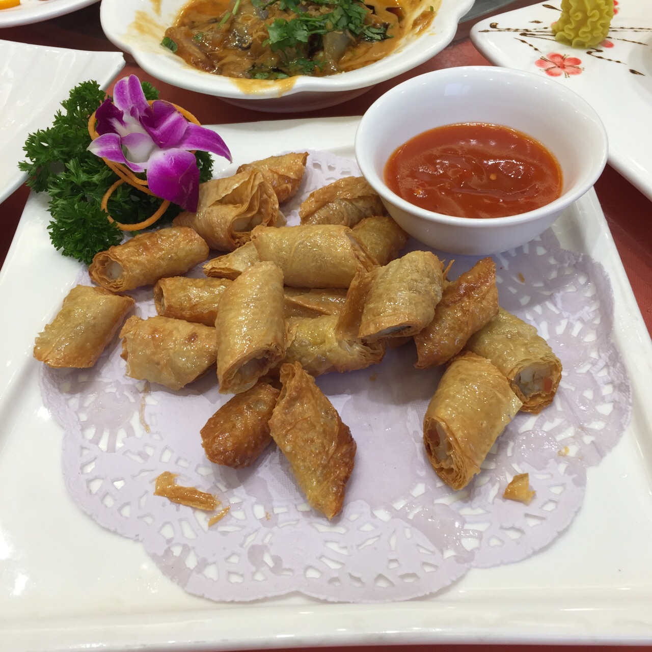 龙华寺对面,在家附近,生日、家庭聚会总会订在它们家。 【环境】有直达电梯到四楼,有独立的包房,不过包房内没有洗手间。但今天突然发现个神奇的事情,吃到一半突然响起了生日歌,恰巧生日刚刚过完,心想不会那么贴心吧,后来发现是自己想多了,房间内有个开关,一按就会自动播放生日歌,烟花的音效,这个设计还蛮特别的。 【菜式】以本帮菜为主,味道都不错,难怪吃的人很多。 【服务】因为奶奶不吃葱,点菜的时候特地关照不要放葱蒜,上菜的时候果然都没有。不过对于换餐盘这个服务做的就不好了,全程没有主动帮我们换过餐盘,在我们提出要换的时候服务员说包房内只有5个空碗,其余的没办法换,我有点不可思议!