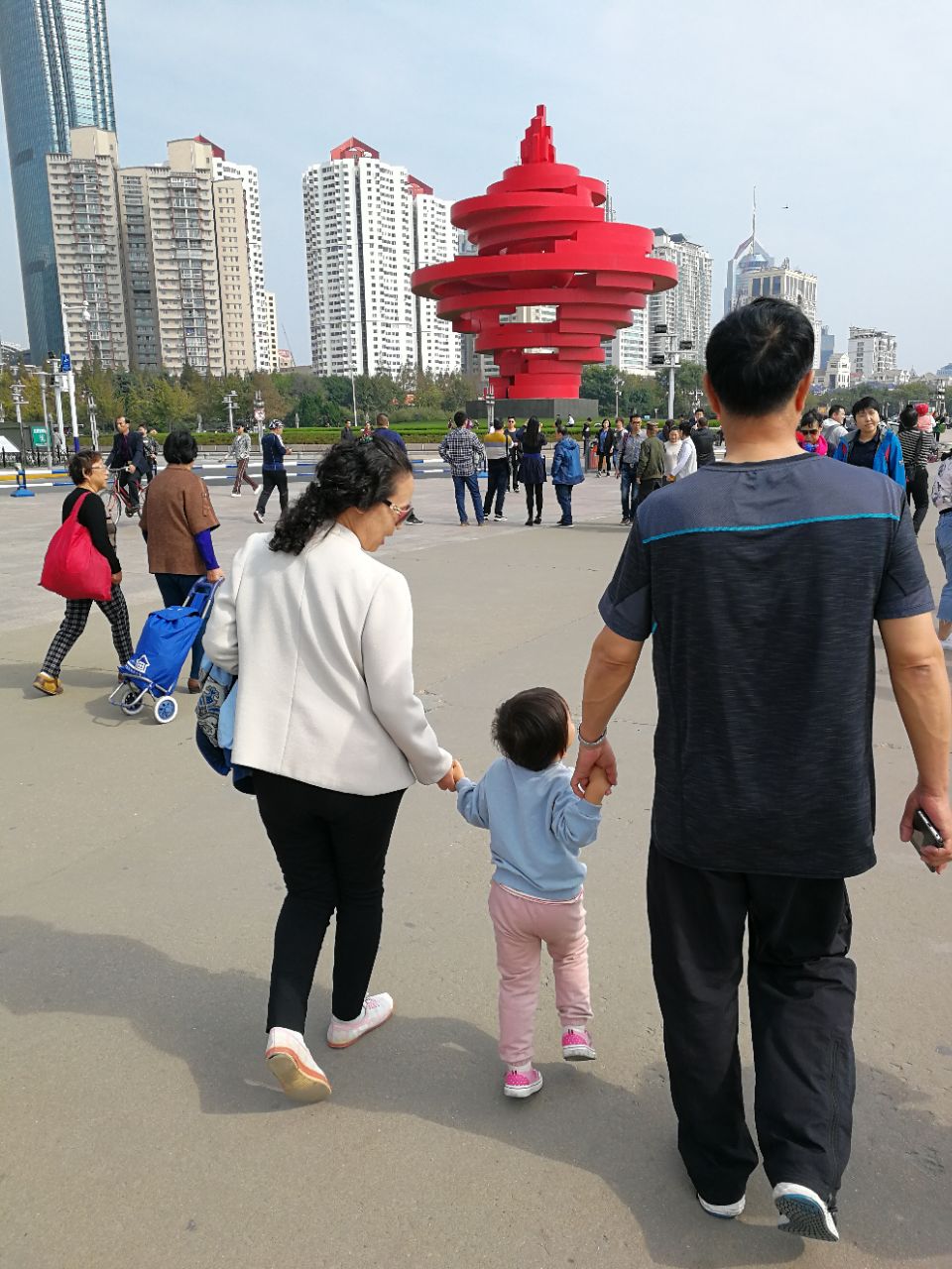青岛的标志性建筑,可以和奥帆中心一起半日游,十月中旬,人不算多,蹭个导游,说周围的高楼写字要十多万每平,吓死我了,瞬间从想留在这个城市变成我还是回家吧。这个广场还是挺好的,大气,干净,卫生间里都有手纸,特别干净,带孩子在海边走走,感觉幸福。还遇到陈伟霆的粉丝团。