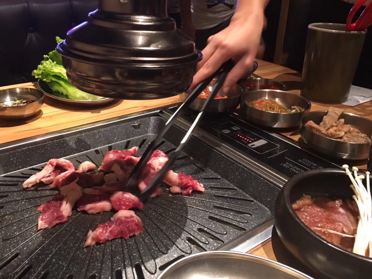 网友2017-10-16环境不错,食材也好新鲜,我们2人点了两种烤肉,两种泡菜,一个鸡汤,还有一些小菜,有服务员帮着烤...环境不错,食材也好新鲜,我们2人点了两种烤肉,两种泡菜,一个鸡汤,还有一些小菜,有服务员帮着烤肉,态度好好。自助配料有好多种,生菜胡萝卜饮料随意拿,人均70元左右。