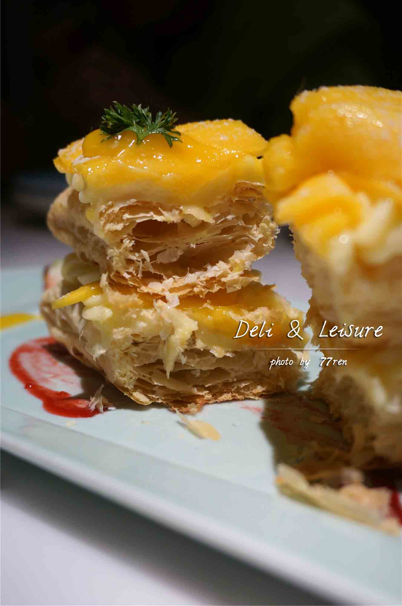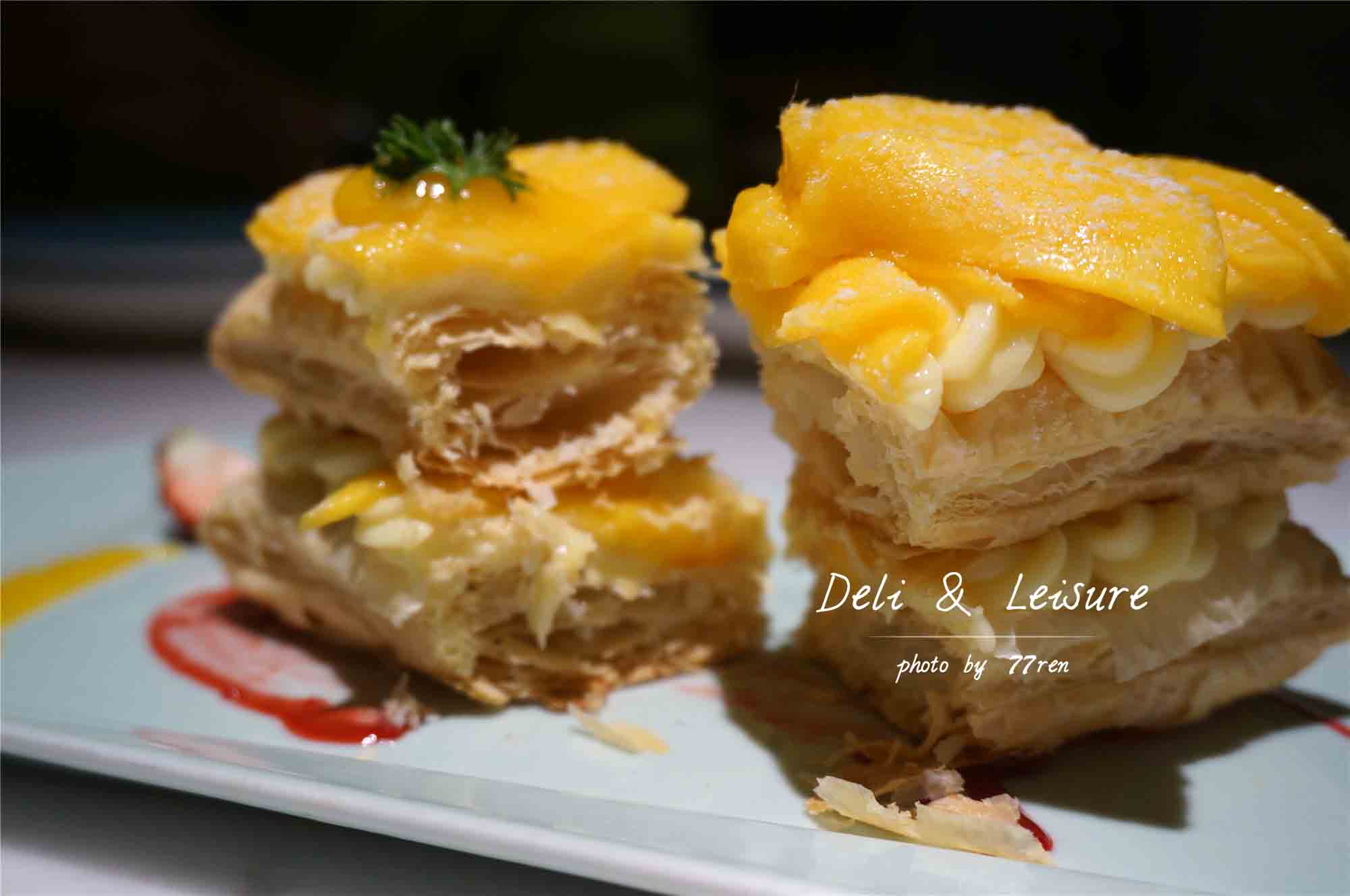 饭后点评已经成为一种习惯,不过习惯探新店的我们,找到一家同行都没吃过的店不容易。 好在某达人找店的本事一等一,提出吃这家,大家都没有吃过一致通过便去了。 上海时代广场有来过,不过这家店是真心没有进去过,门面给人一种吃西式简餐的感觉。 店里的蛋糕品种不少,不过不太就是不太貌美,说好吃甜品店,最后阿拉吃点了一款蛋糕,三杯饮料。 香芒拿破仑 比平时吃到的拿破仑要高,酥皮的蓬松感很大,说实话,第一眼没觉得它会好吃。 他们家的酥皮可以很利落的切开,酥松的程度不赖,就是表层的芒果不会太甜。 有卡仕达酱提升味蕾,有种在吃芒果千层酥的感觉,推荐排第一是有道理哒。