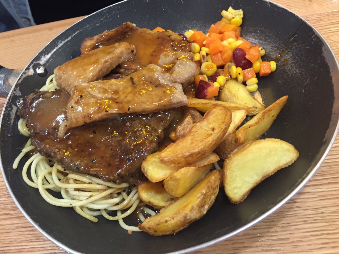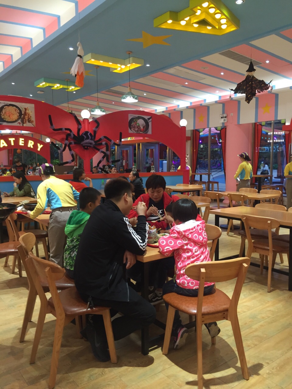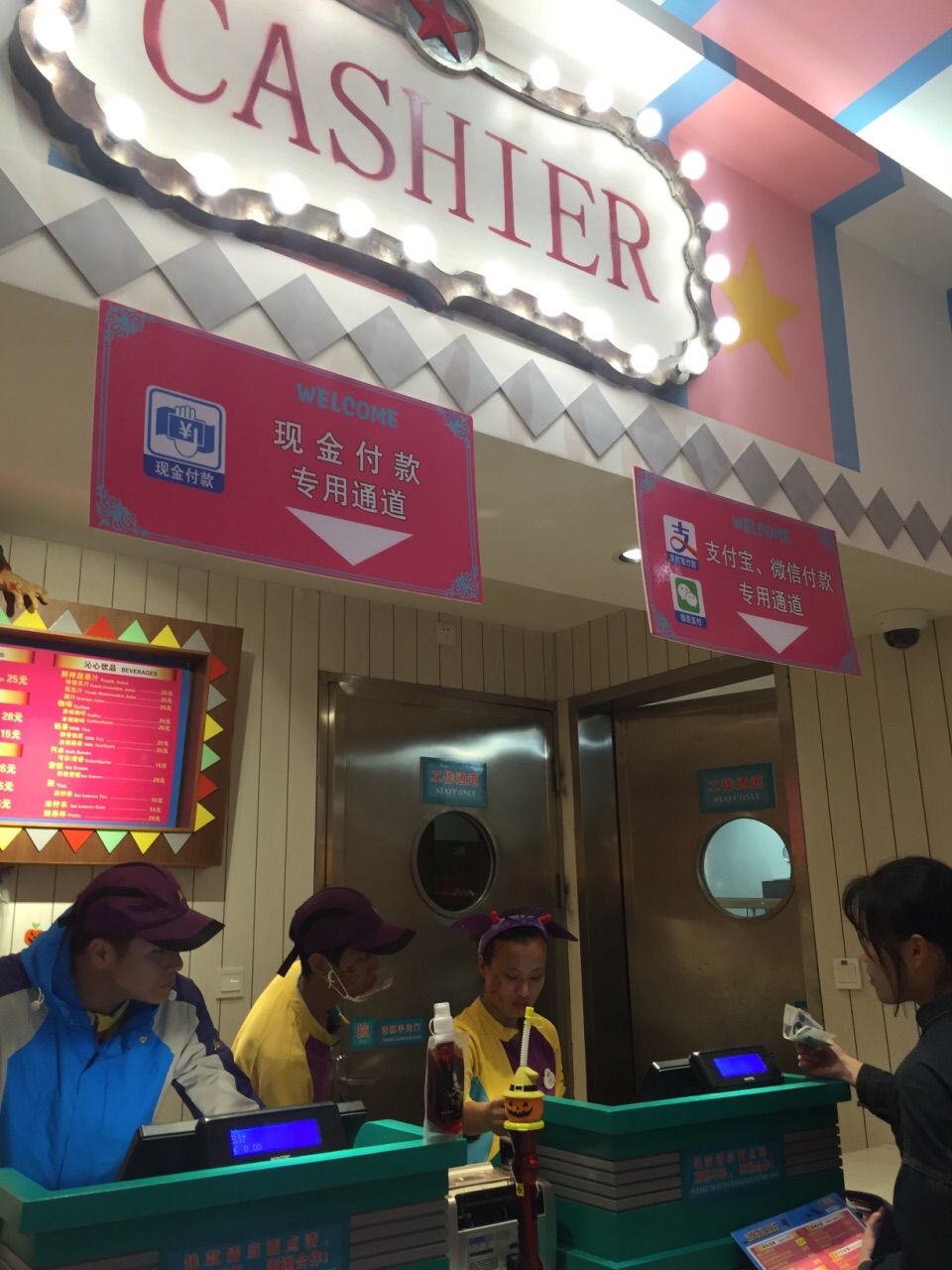 位于跳楼机附近的餐厅。 相对椰林餐厅,选择多一些的感觉。 有牛扒, 有面, 有饮料等等。 点了纽西兰牛扒, 还有杂盘, 也有牛肉面, 价格都是58.68.78差不多这样。 (っ ̯ -。)。 分量还是够的。味道也不错。 服务员态度也比较好。 收银台旁边跳舞的僵尸吓了我好几下。 ◥(ฅº₩ºฅ)◤