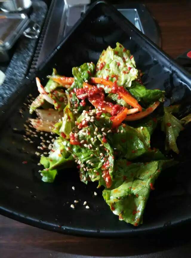 店员是韩国人,又帅又可爱,服务好,给烤肉。烤盘特别大可以摆满。土豆泥很好吃。菜码不大,价格也不便宜