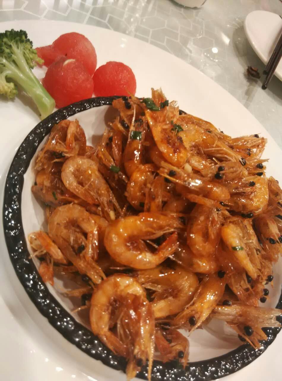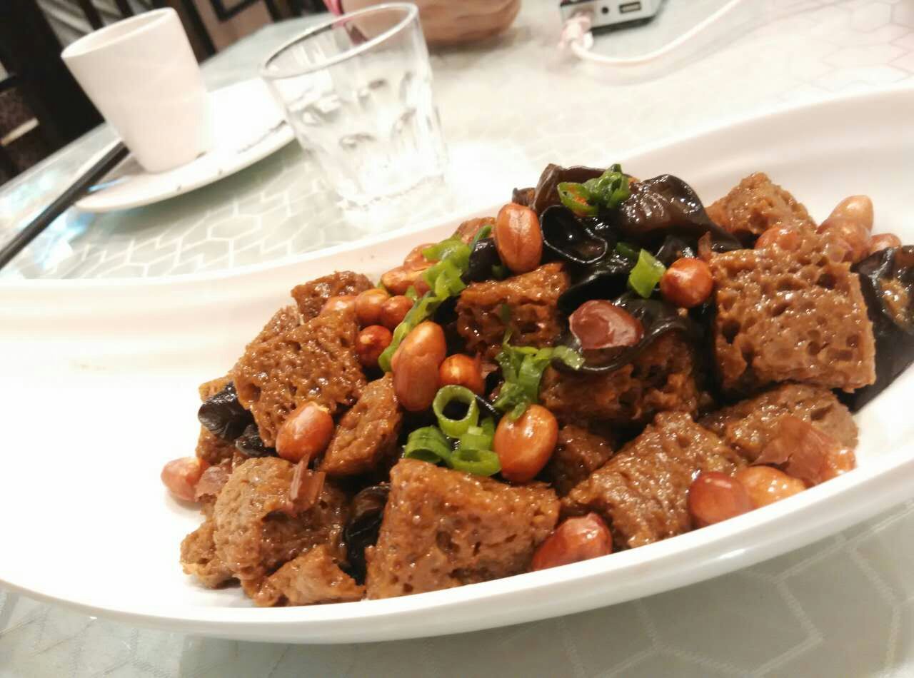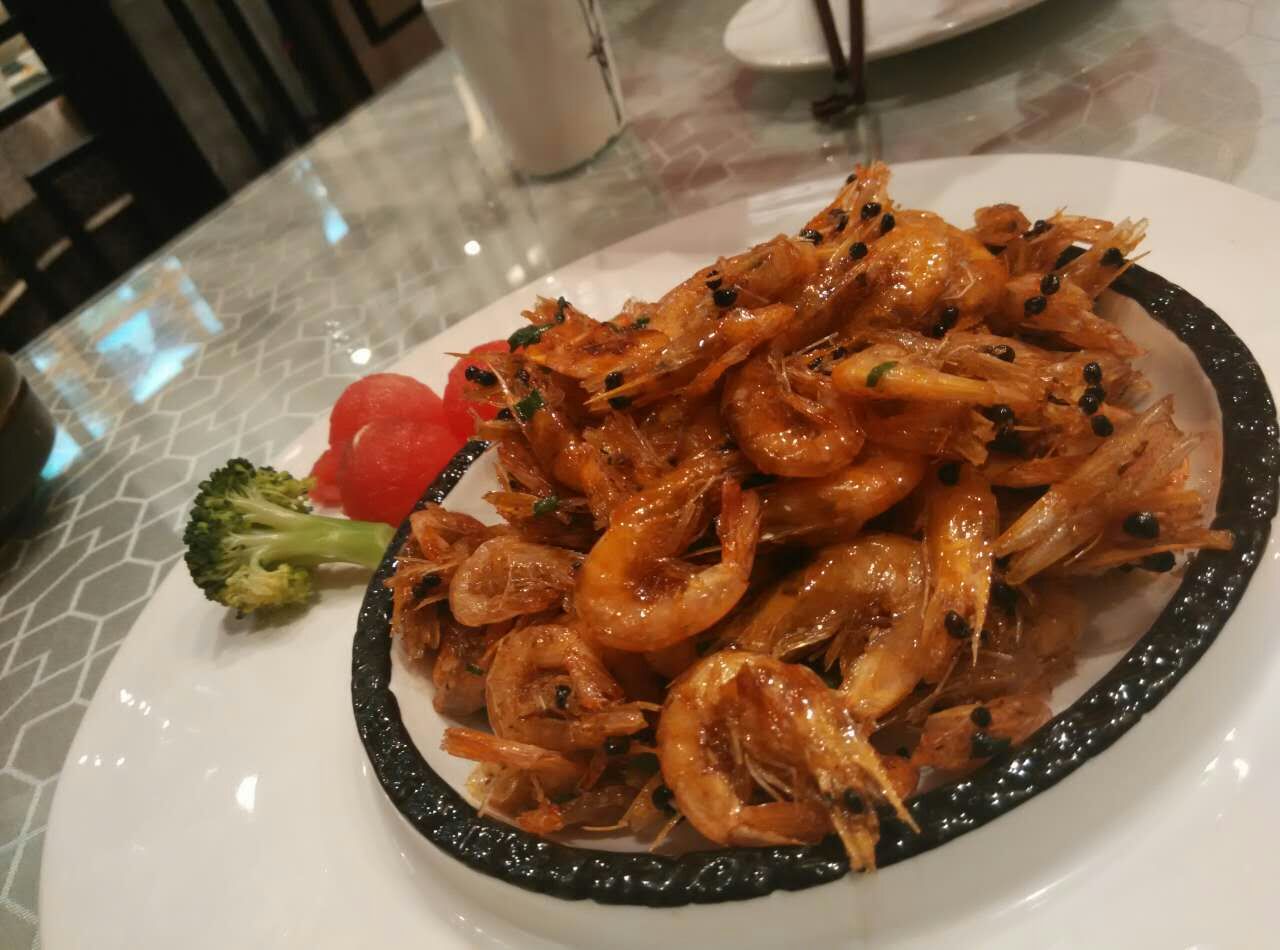 油爆虾很惊艳,味道好,虾皮脆,还很多,吃了好久,炒黄牛肉有点辣。四季烤麸也是热吃的,还好
