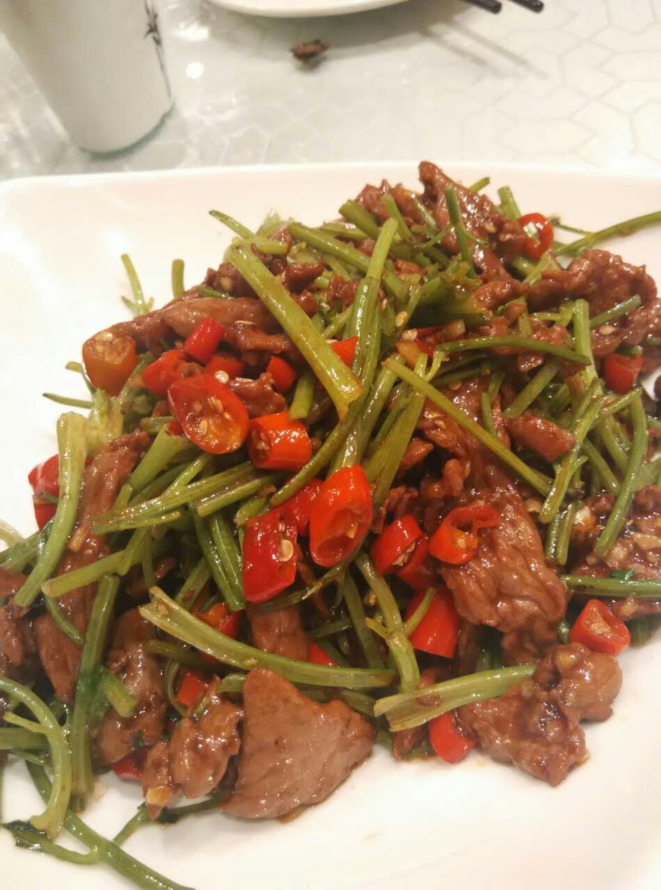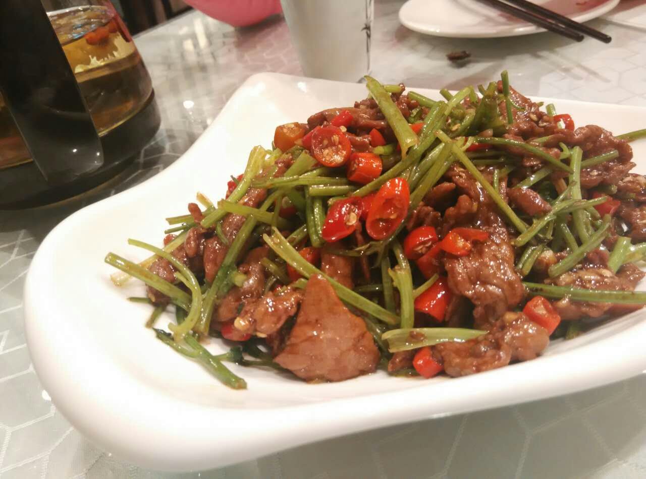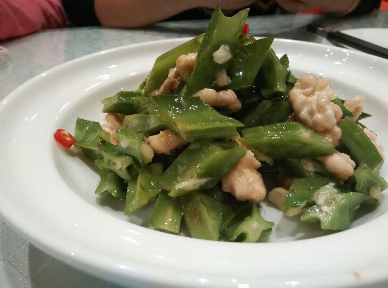 油爆虾很惊艳,味道好,虾皮脆,还很多,吃了好久,炒黄牛肉有点辣。四季烤麸也是热吃的,还好